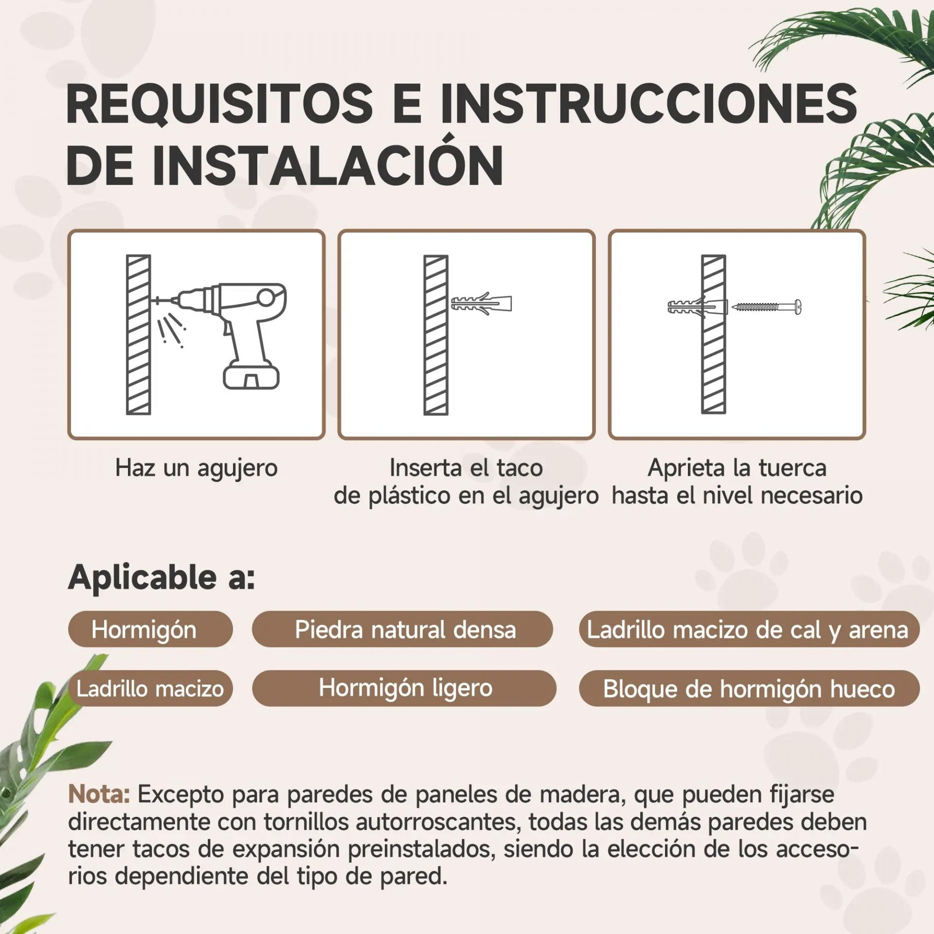 - - MONTAJE EN LA PARED: Este rascador de pared para gatos es perfecto para liberar espacio en el suelo, ofreciendo múltiples opciones para que tu gato trepe y explore, mientras se adapta a la decoración de tu hogar