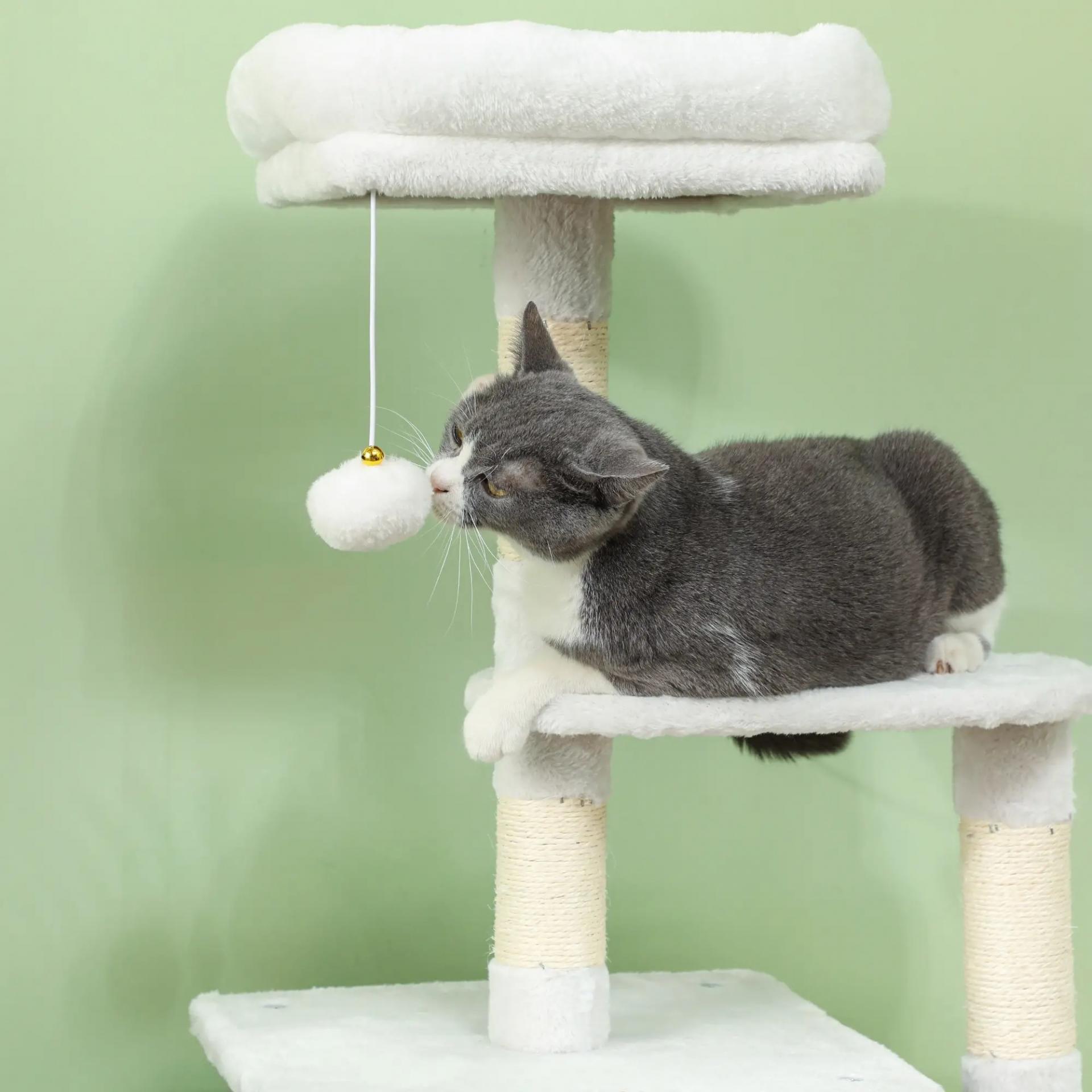 - - MÁXIMA COMODIDAD: Revestido con un tejido de felpa suave, este árbol para gatos proporciona un tacto agradable para las patas y el pelaje de tu gato, garantizando siestas cómodas y momentos de juego agradables