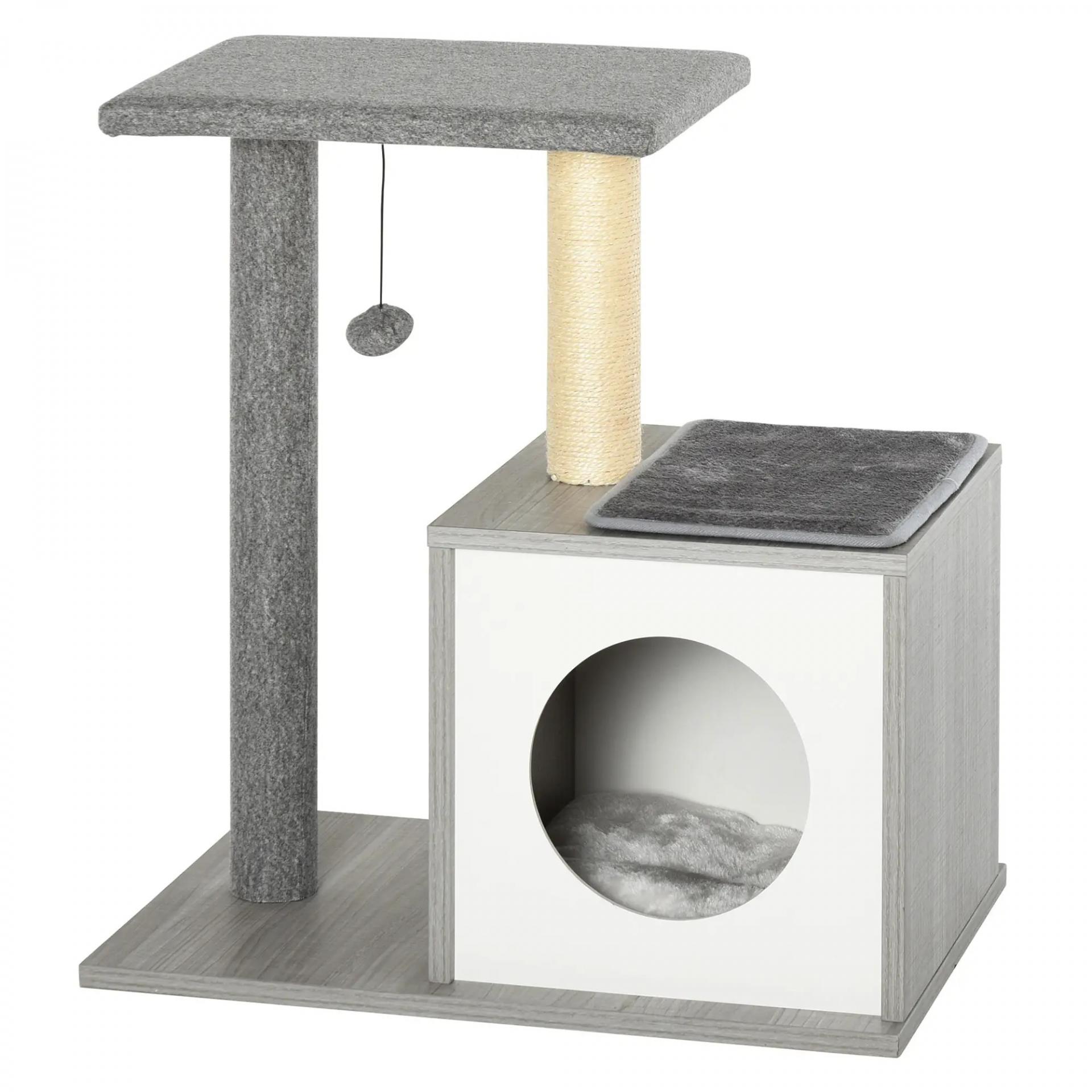 - - CÓMODO: Las plataformas y la cama están cubiertas de suave felpa, agradable para el tacto de tu gato. Los cojines removibles tanto en el interior como en el techo de la cama añaden un extra de confort para tus peludos amigos