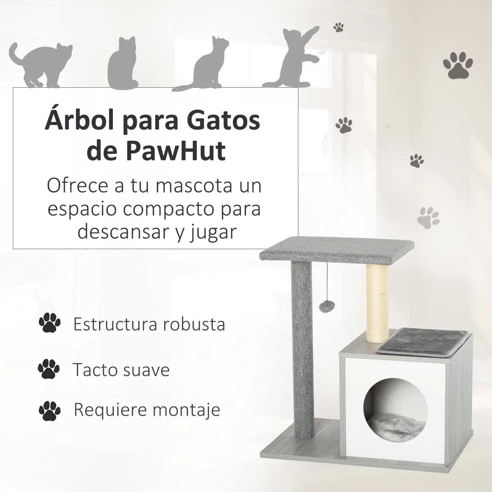 - CUEVA CON RASCADOR PARA GATOS: Este compacto centro de actividades para gatos se puede colocar en cualquier rincón de la casa e incluye una cama, una divertida pelota y una columna rascadora. Ofrece múltiples opciones para trepar, jugar y descansar