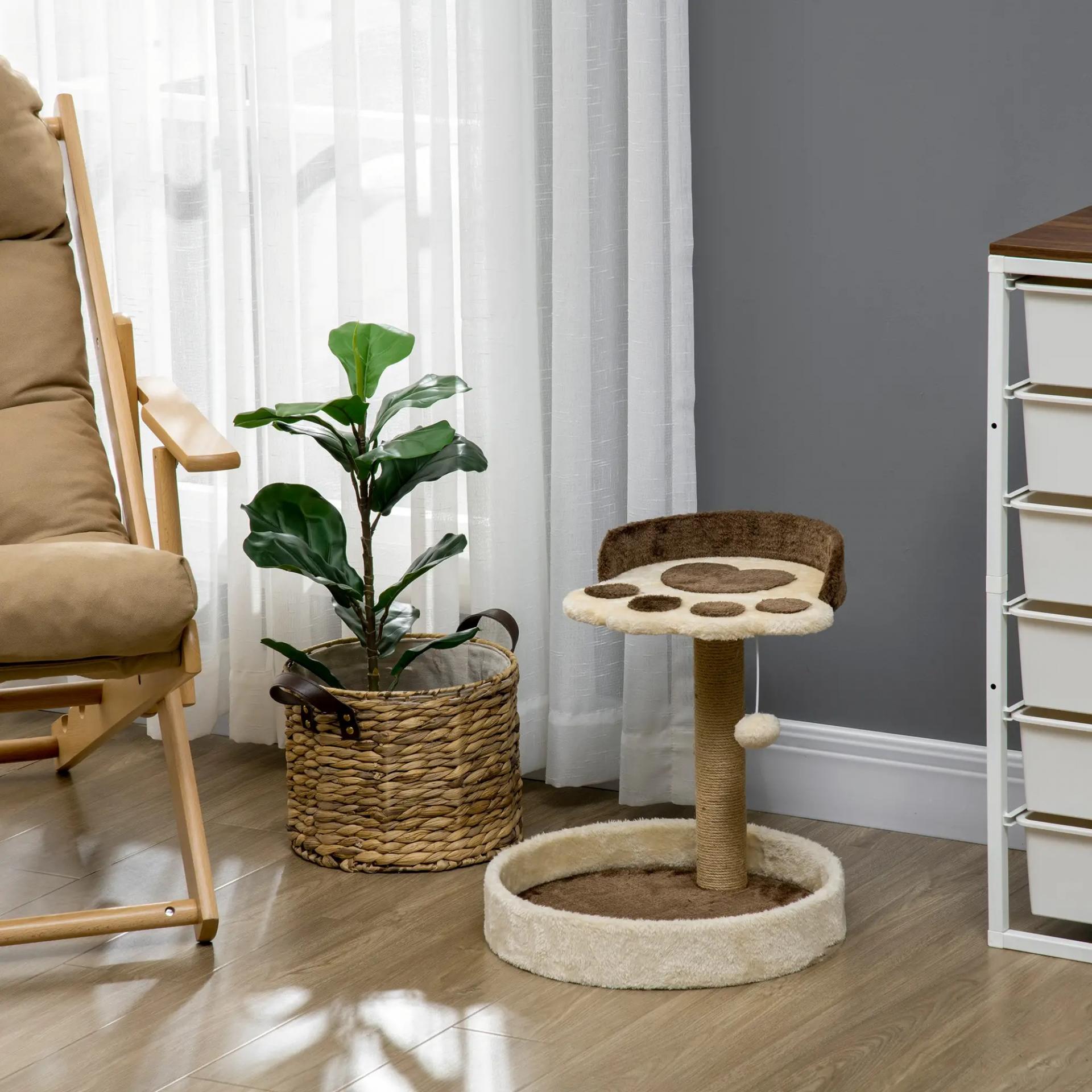 - CONFORT PARA TU GATO: Este árbol para gatos combina una cama inferior redonda y una plataforma superior acolchada en forma de huella, ambas tapizadas en felpa suave, ofreciendo dos espacios perfectos para que tu mascota descanse y se relaje cómodamente
