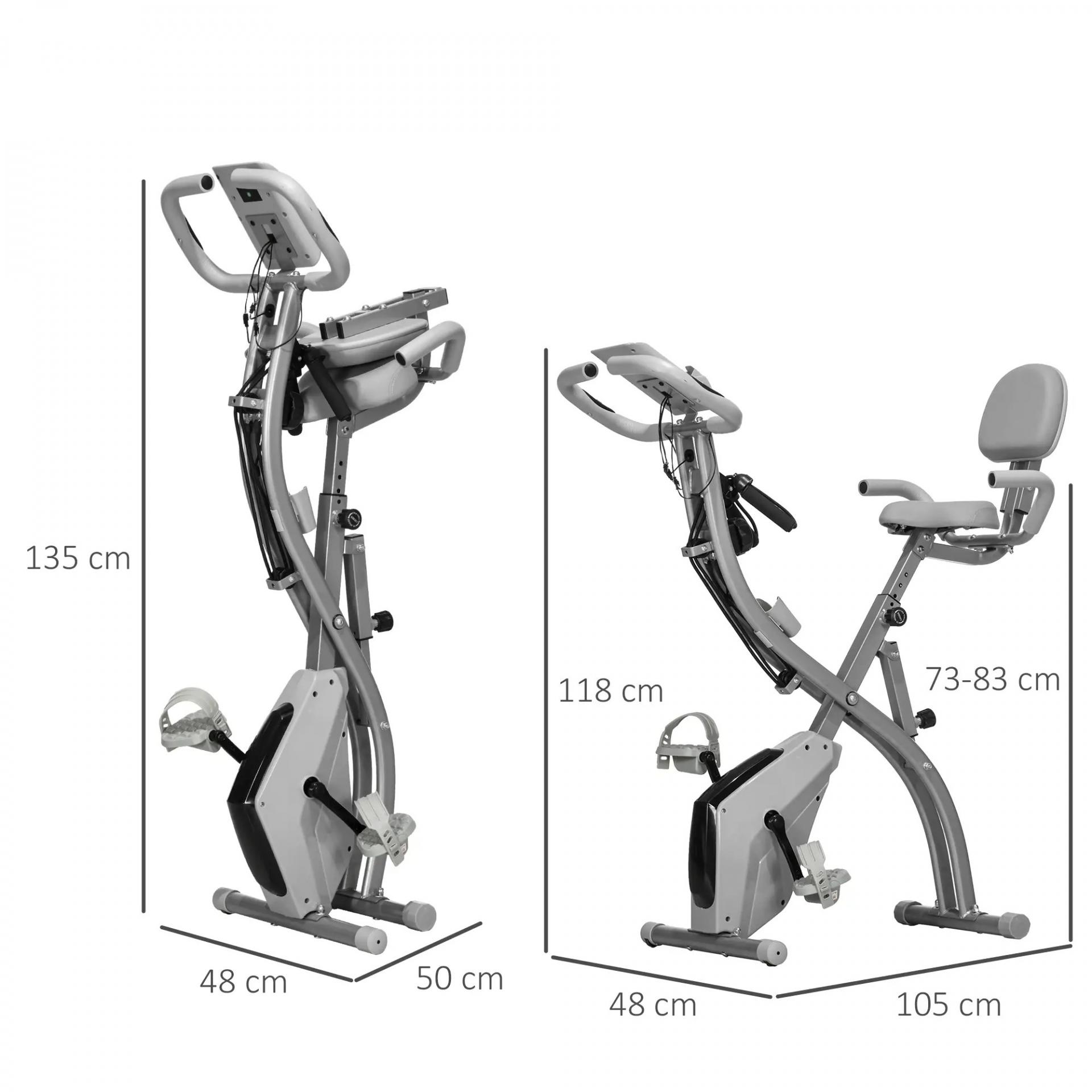 - - MEDIDAS TOTALES: 105x48x118 cm (ANxPxAL), Medidas plegadas: 50x48x135 cm (ANxPxAL), Carga máxima: 120 kg. Esta bicicleta estática con respaldo requiere montaje