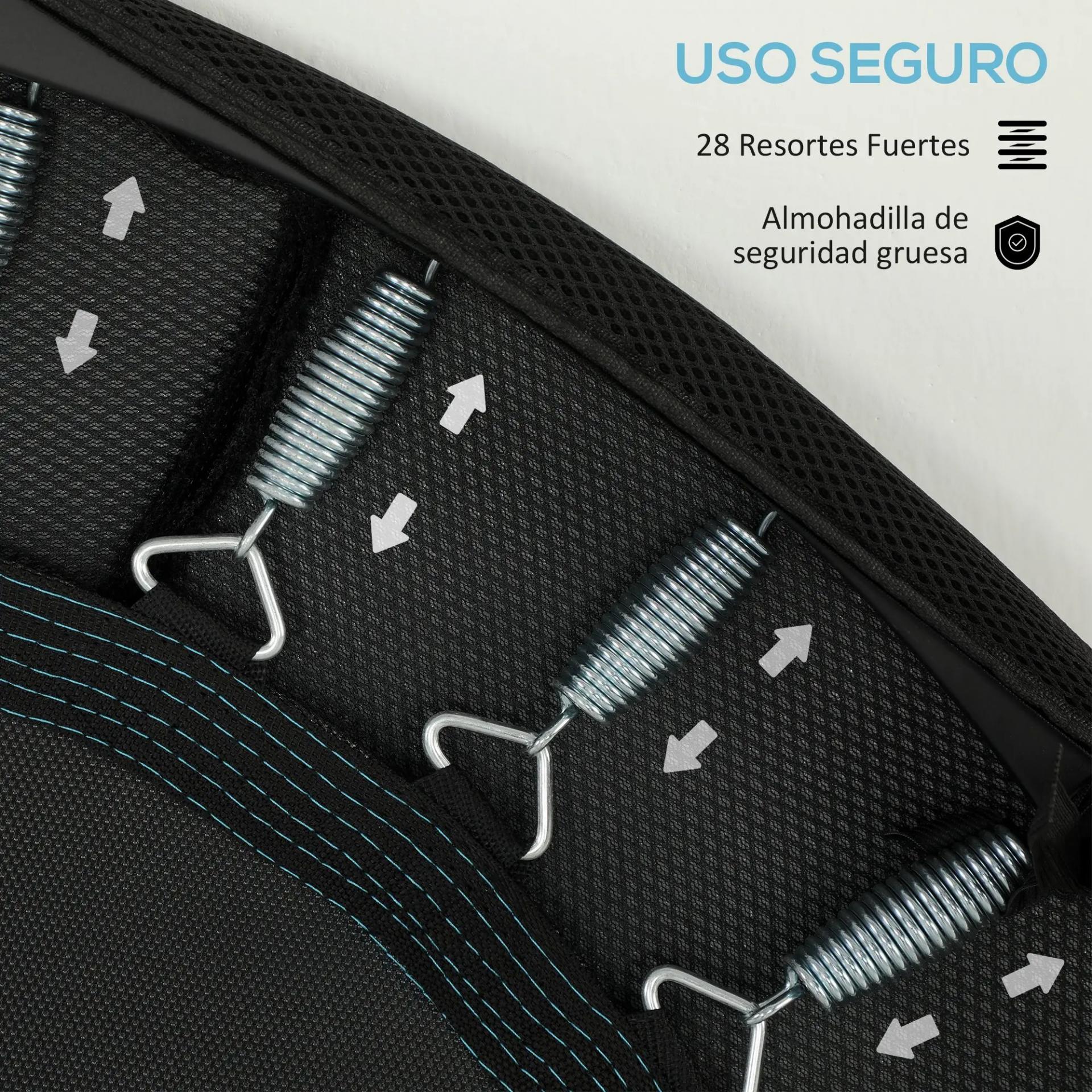 - - GRAN RESISTENCIA: Con 28 muelles, este trampolín de salto ofrece una excelente firmeza y durabilidad. Su construcción robusta te permite disfrutar de una experiencia de ejercicio más efectiva, ya sea para saltos o entrenamiento aeróbico