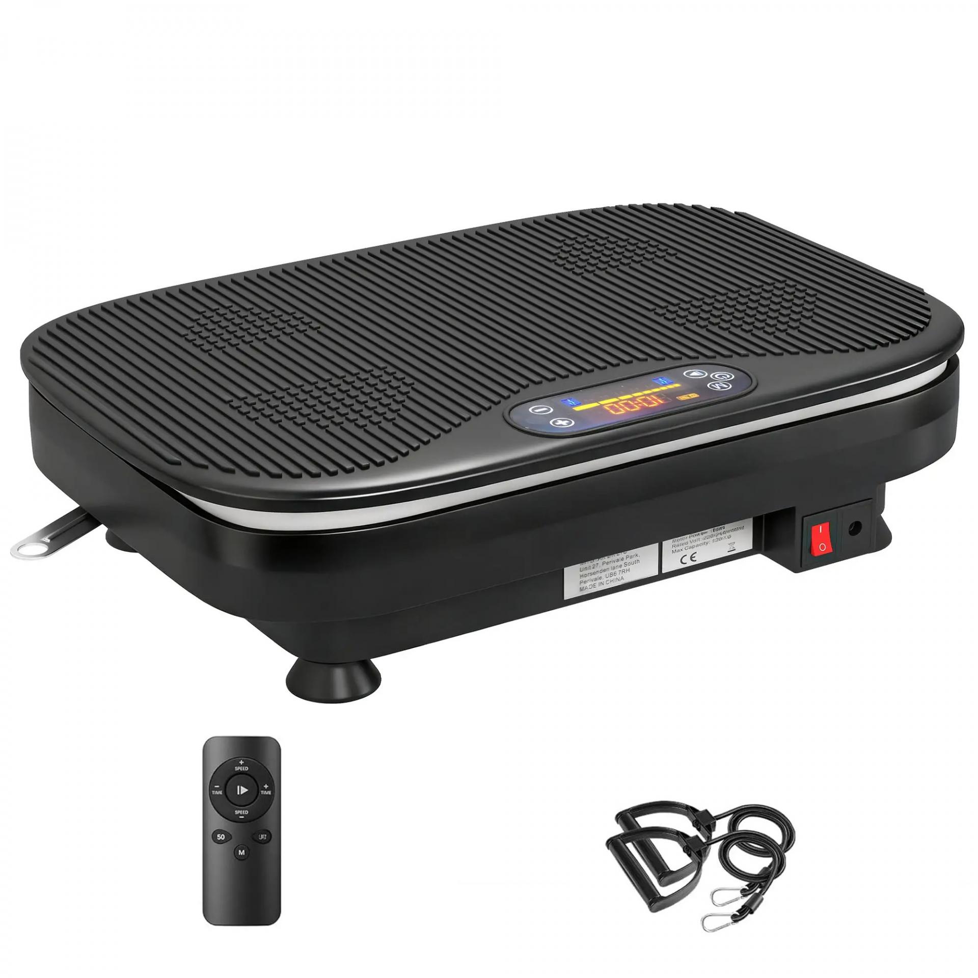 Plataforma Vibratoria con 99 Velocidades 3 Programas Altavoz Bluetooth Pantalla LED Mando a Distancia Bandas Elásticas