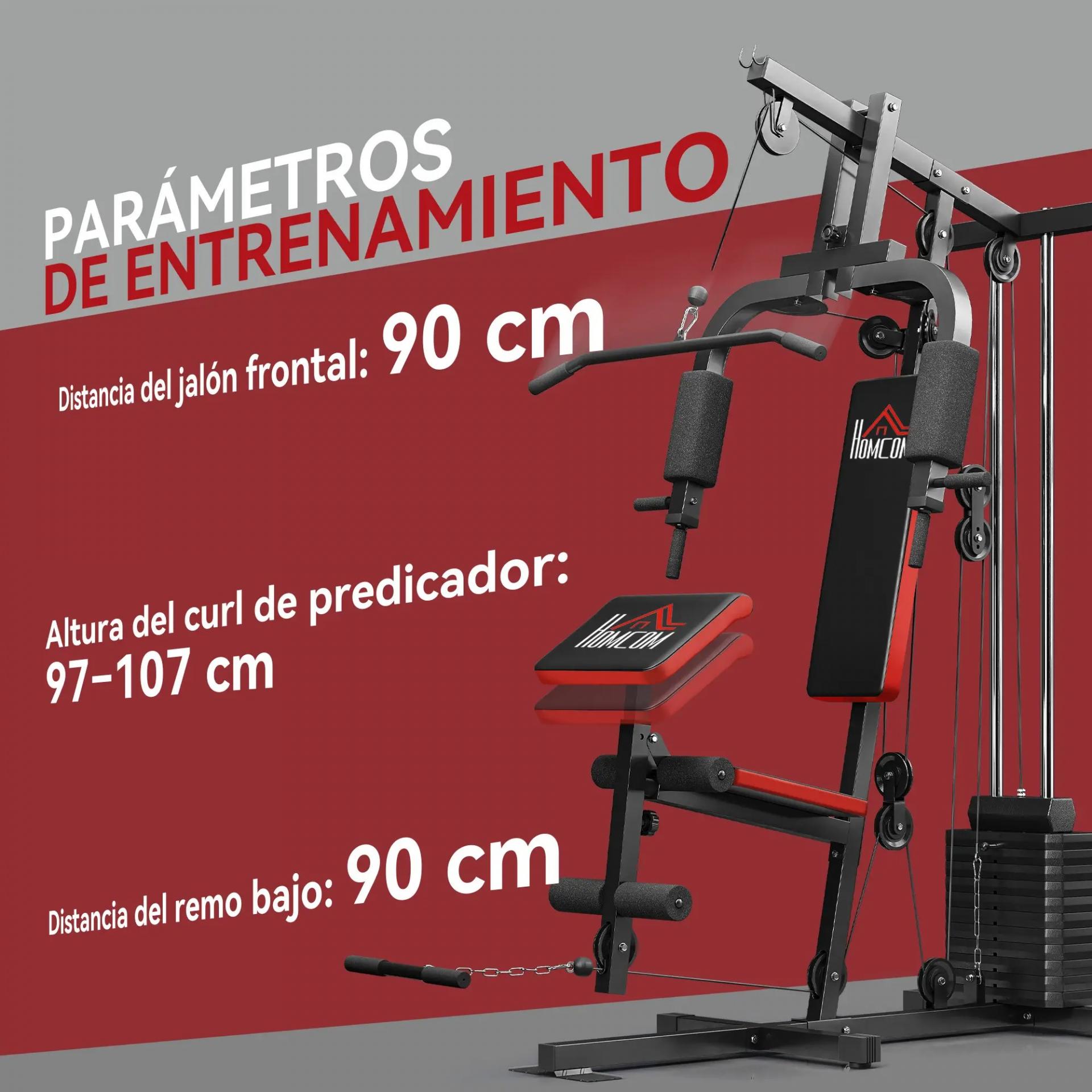 - - MEDIDAS TOTALES: 135x103x210 cm (LxANxAL). Carga máxima: 100 kg. Ten en cuenta que esta estación de musculación se envía en cuatro paquetes, que podrían llegar en diferentes días