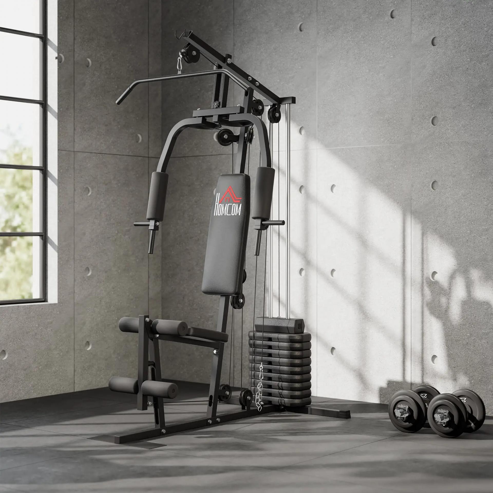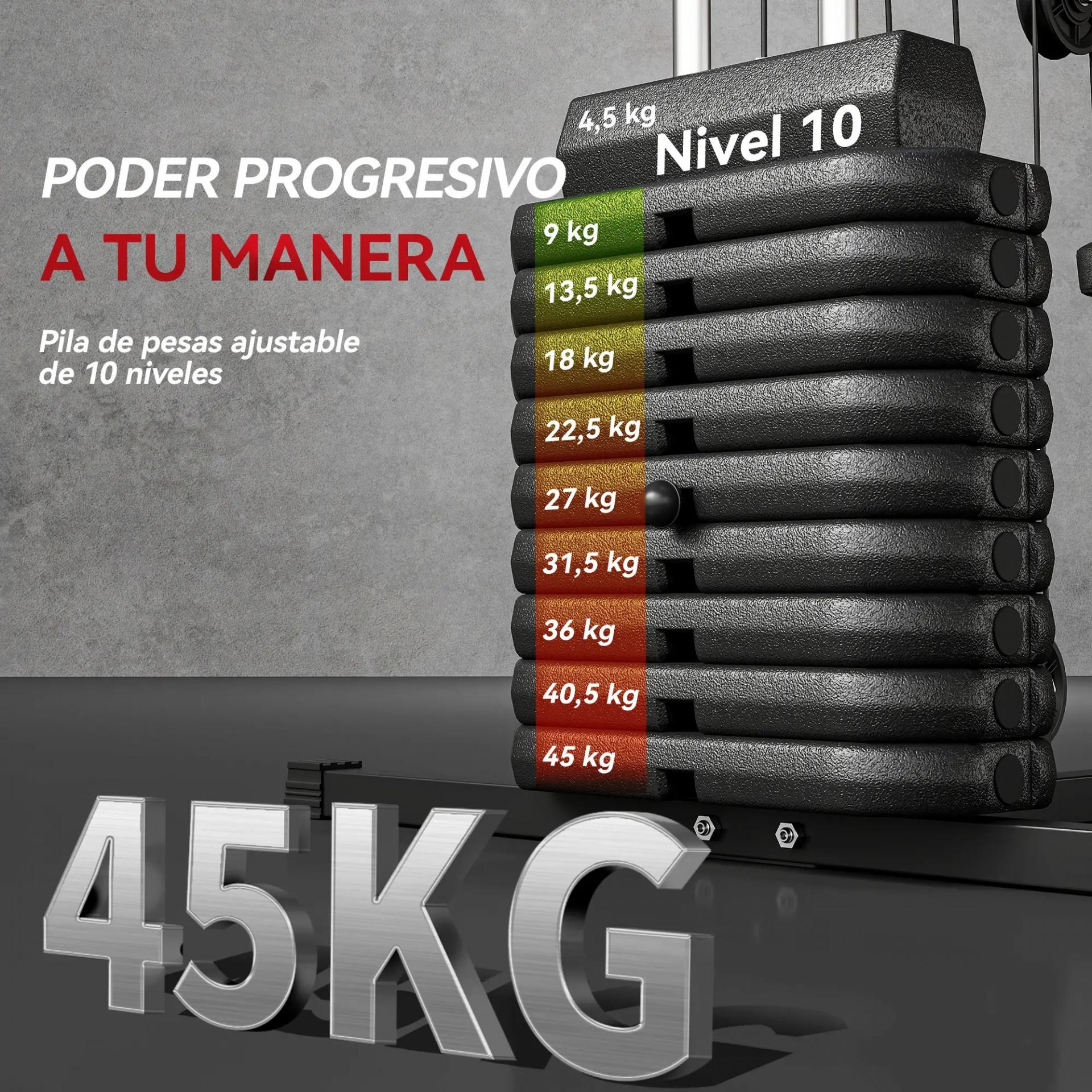 - ENTRENAMIENTO COMPLETO: Nuestra multiestación de musculación para el hogar incluye pilas de pesas de 45 kg, que se pueden ajustar fácilmente según tu nivel de habilidad. Ideal para quienes buscan un gimnasio compacto y eficiente para uso doméstico