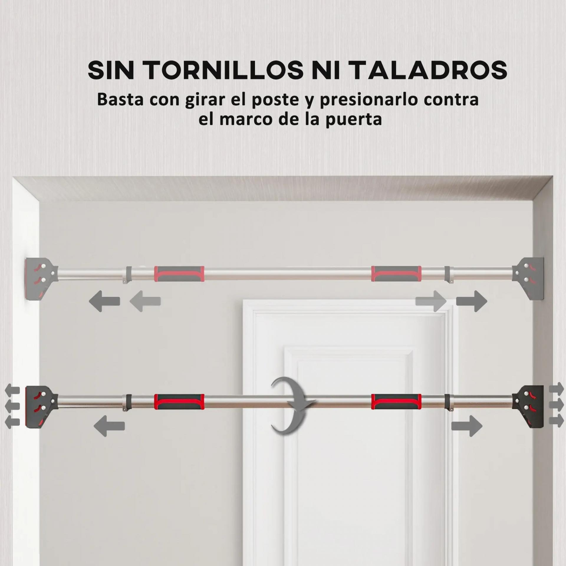 - MONTAJE SIN ESFUERZO: Instala esta barra de dominadas para marco de puerta fácilmente sin necesidad de tornillos. Solo necesitas girar el tubo para fijarlo firmemente en el marco de tu puerta