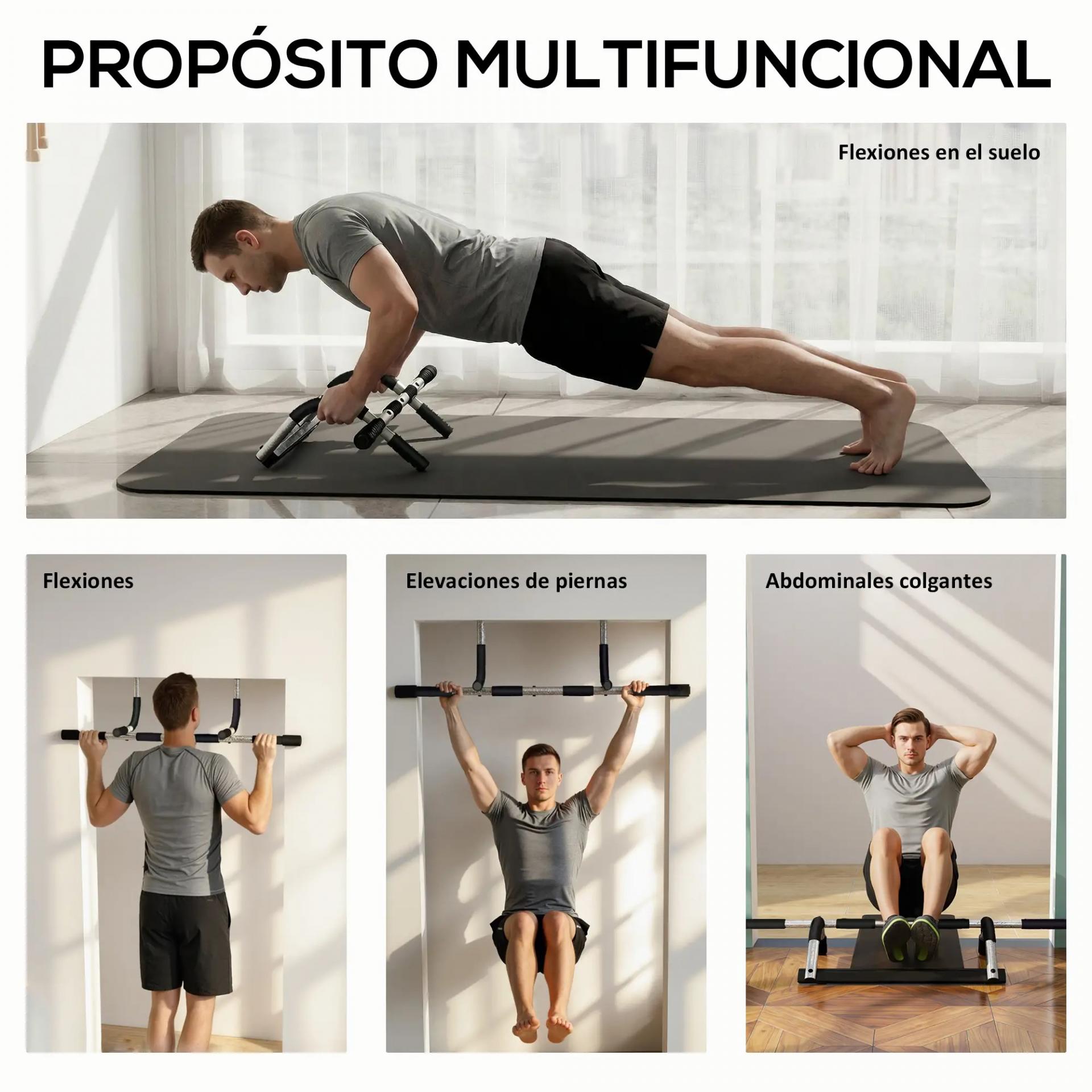 - - USO SEGURO: Barra de dominadas ajustable que se adapta fácilmente a puertas estándar. Incluye tornillos con dientes antideslizantes, eliminando arandelas y asegurando un soporte firme y seguro