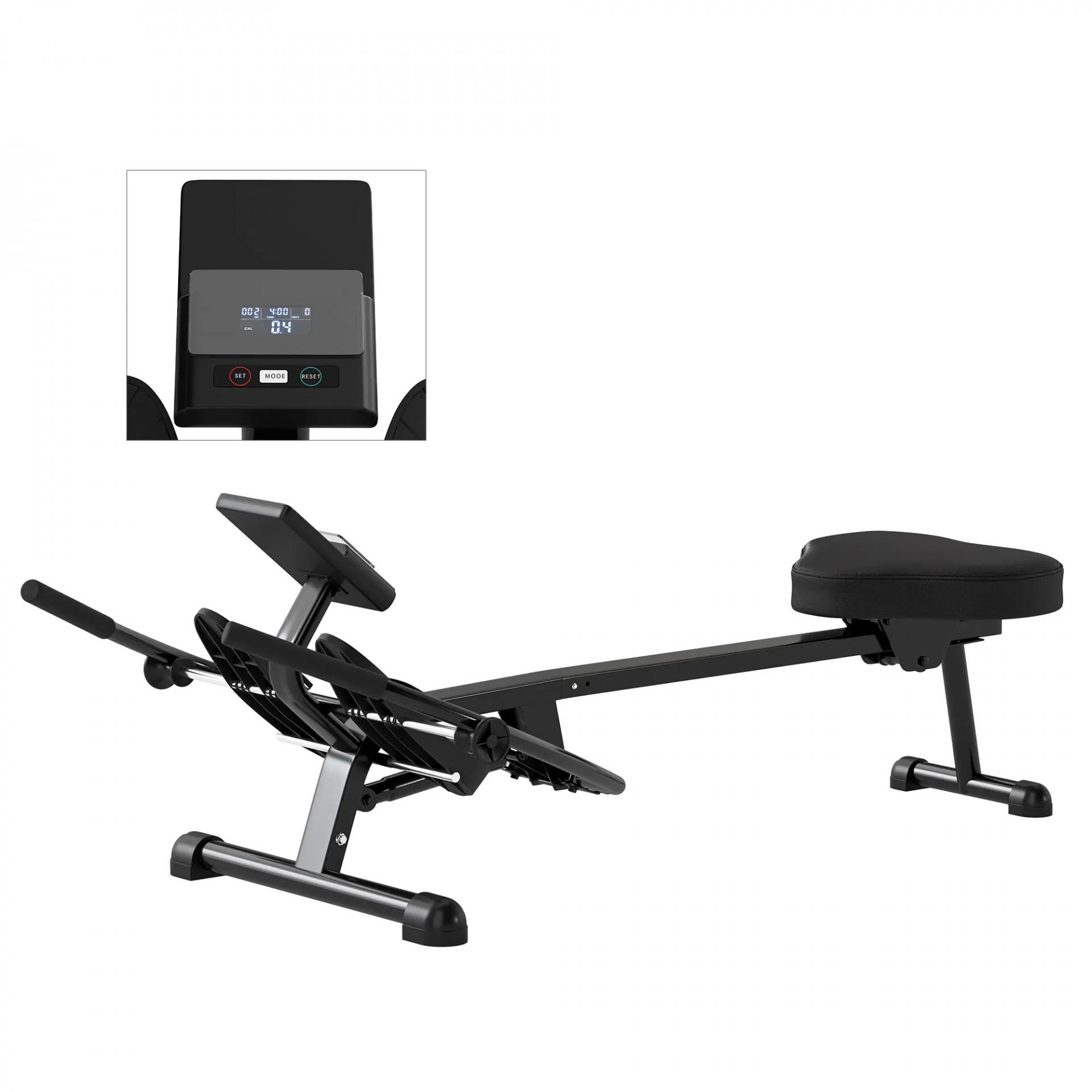 Máquina de Remo para Casa con 12 Niveles de Resistencia Hidráulica Pantalla LCD para Entrenaminto en Gimnasio Negro