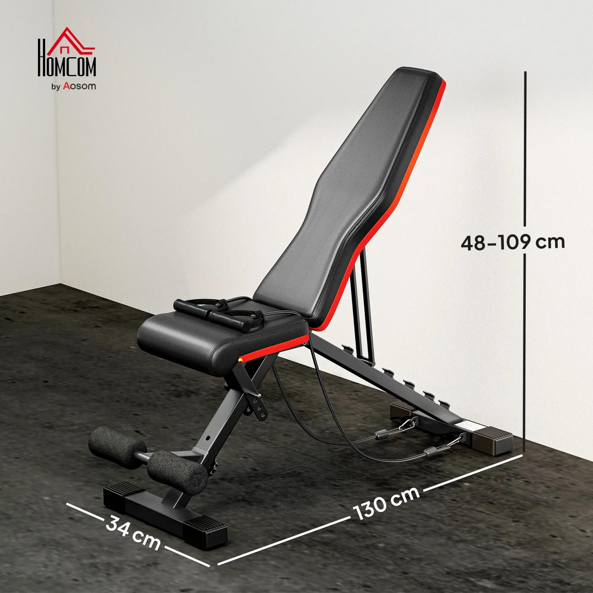 - - FÁCIL LIMPIEZA Y ESTILO MODERNO: El banco de musculación plegable cuenta con superficie de PU fácil de limpiar y un elegante diseño en negro con detalles rojos, aportando un estilo deportivo y moderno que dará energía a tu zona fitness en casa