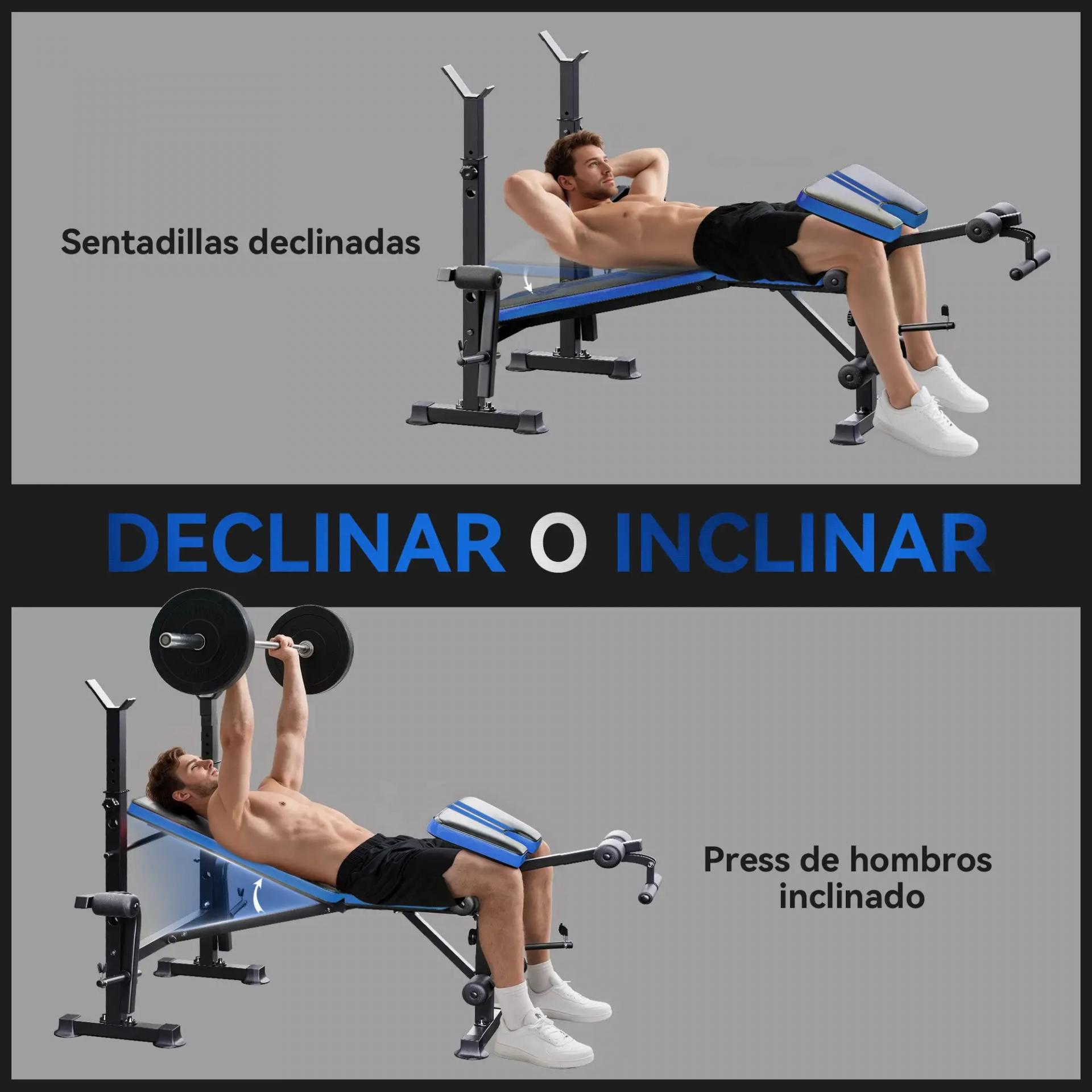 - - CÓMODO Y SEGURO EN CADA MOVIMIENTO: Los rodillos acolchados y los agarres de espuma del banco de pesas ofrecen comodidad en cada repetición. Los pasadores de bloqueo aportan seguridad extra. Perfecto para trabajar brazos, piernas, abdomen, glúteos y más