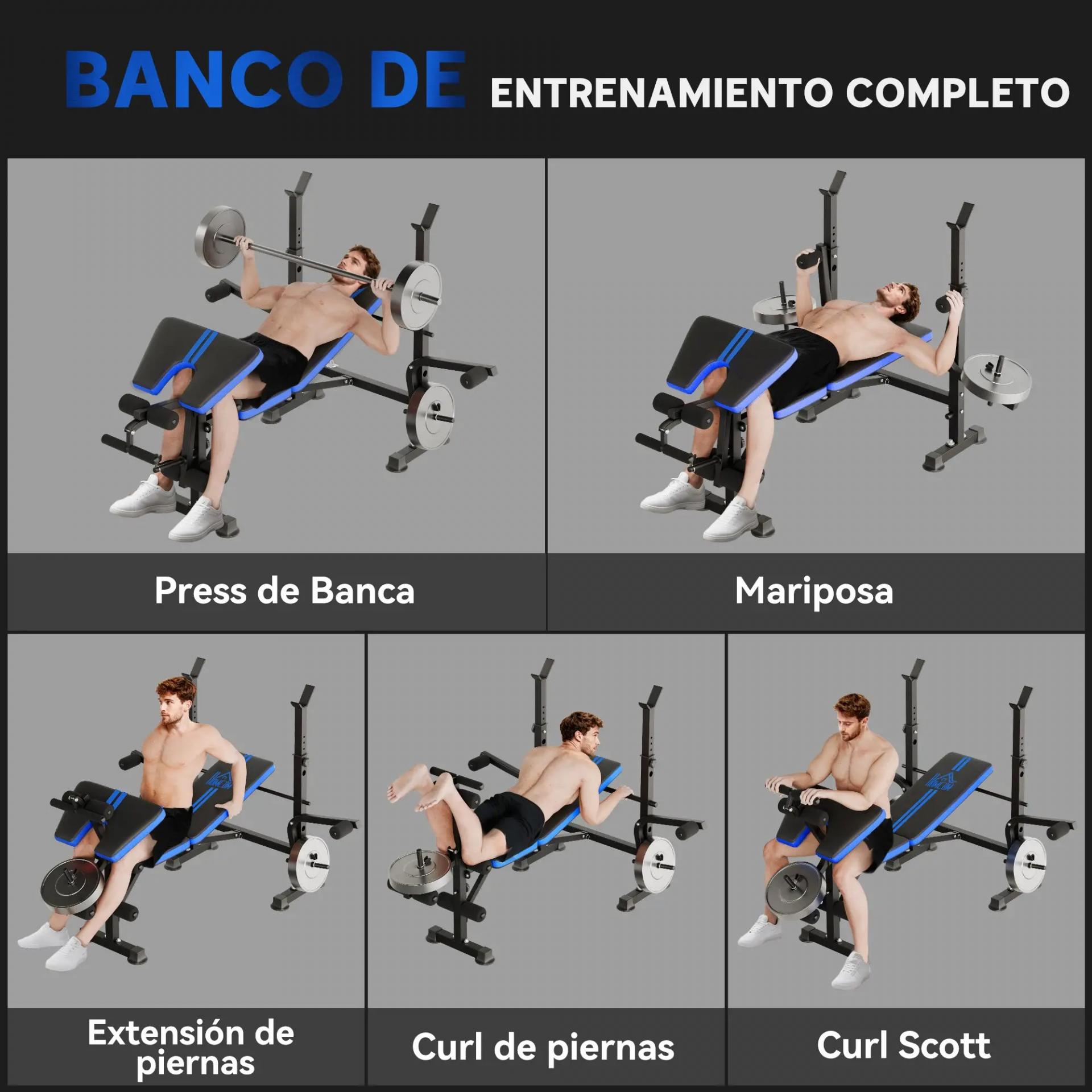 - 6 EN 1 PARA ENTRENAMIENTOS COMPLETOS: Saca el máximo partido a tu rutina con este banco de pesas musculación. Incluye soporte para press de banca, extensión de piernas, curl predicador y mariposa, todo en un solo equipo compacto y versátil