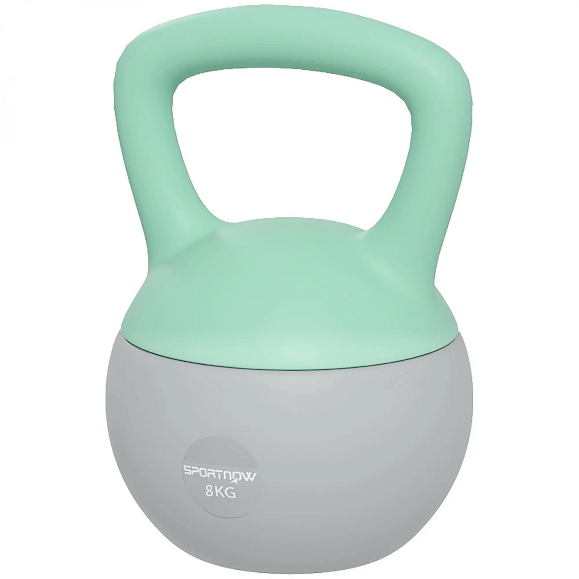 Pesa Rusa 8 kg Kettlebell Relleno de Arena Metálica Mango Antideslizante para Casa 19x19x28 cm Verde y Gris