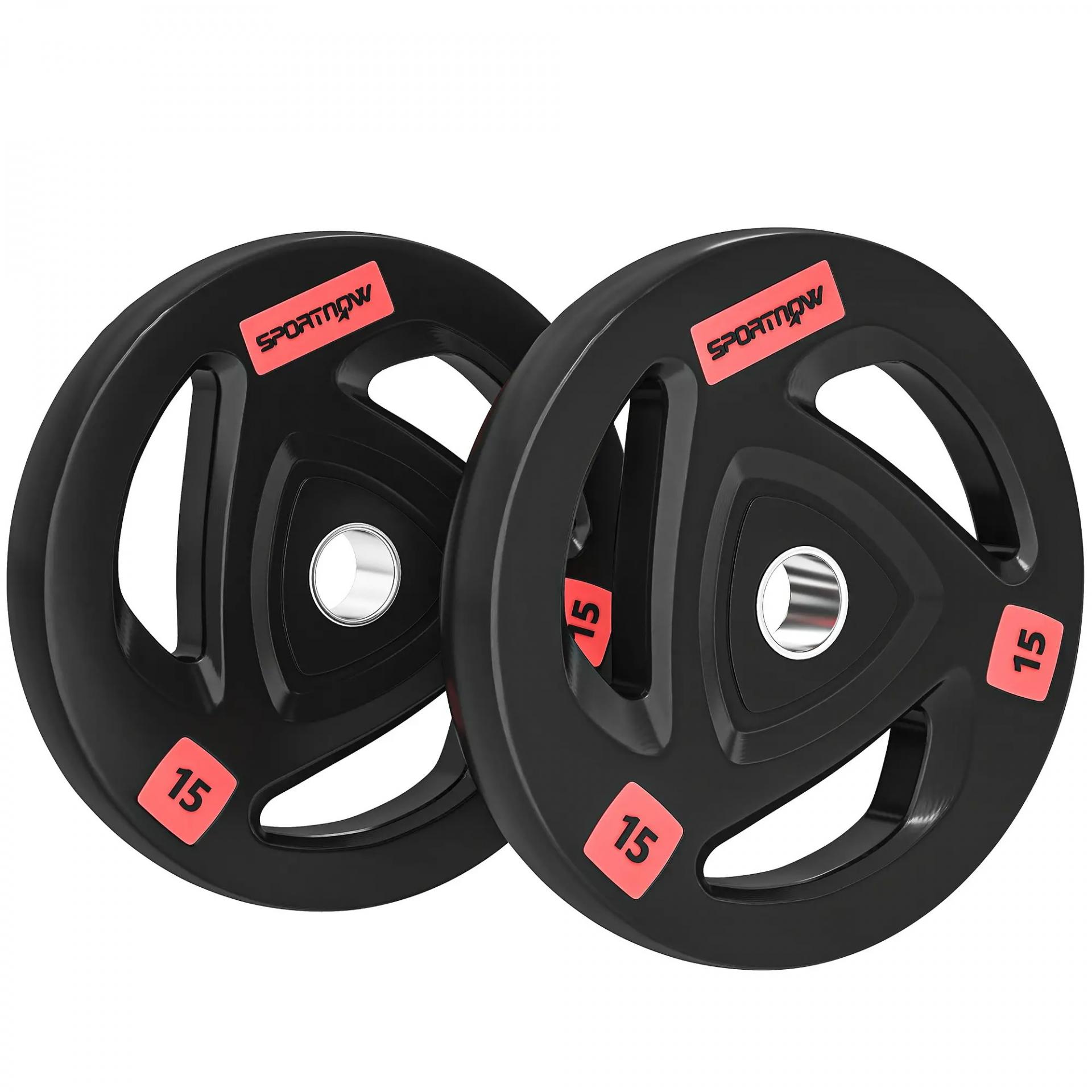 Juego de 2 Discos de Pesas Olímpicos de 15 kg Agujero 50 mm de Hierro Fundido para Entrenamiento de Fuerza Negro
