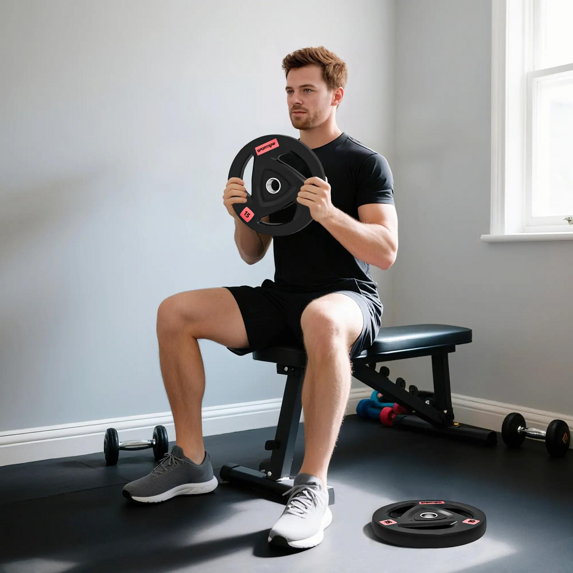 - - PARA COMPLEMENTAR CON UNA BARRA DE PESAS: Creadas con orificios de 5 cm, estos discos de pesas tienen el tamaño adecuado para las barras olímpicas estándar y otras barras especiales como la barra de curl, la barra trap y la barra de sentadillas