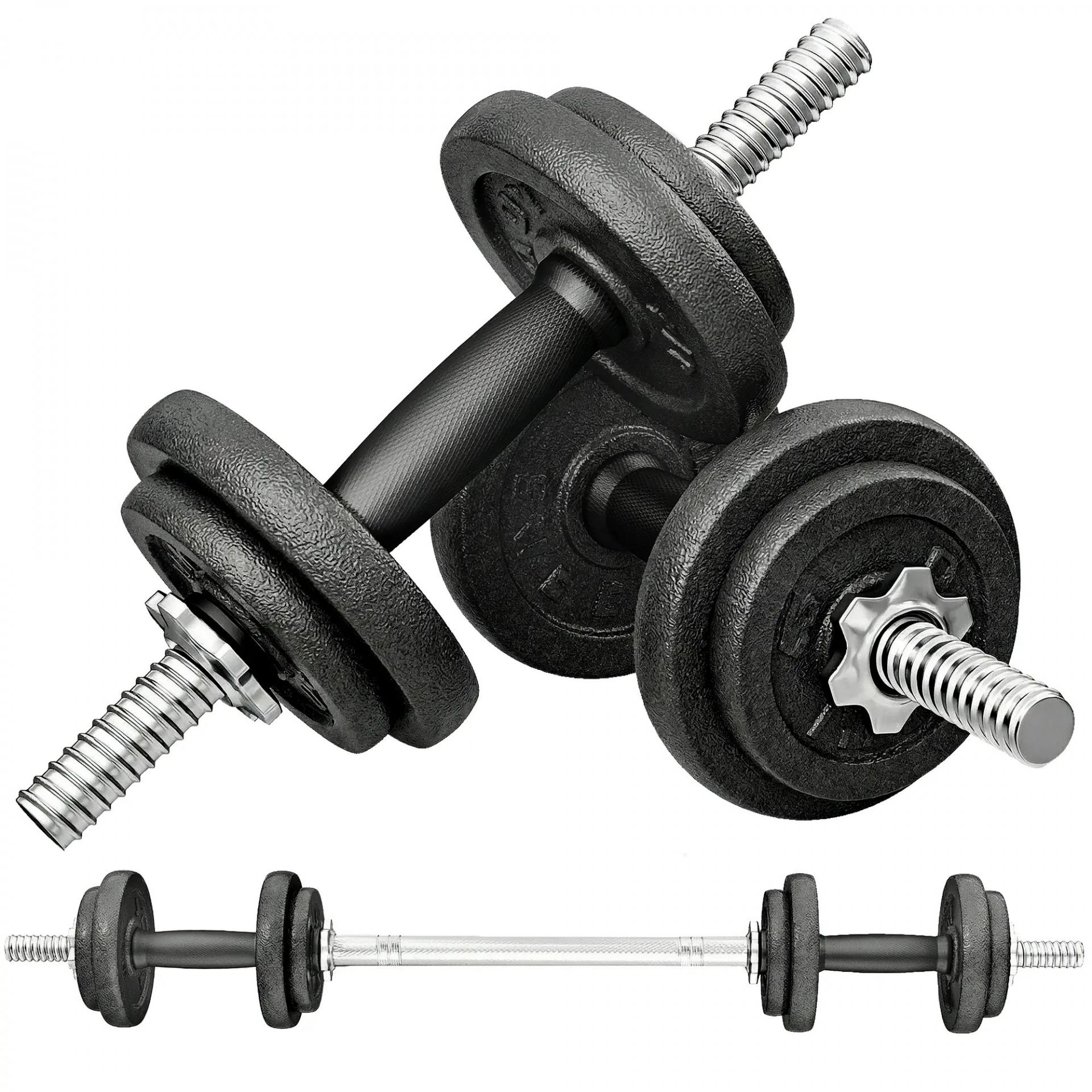 - PESAS AJUSTABLES PARA ENTRENAMIENTOS PERSONALIZADOS: Set de 20 kg con 4 discos de 2,5 kg, 4 discos de 1,25 kg, 2 barras de mancuernas, 1 barra larga y 4 cierres de bloqueo giratorios, ideal para distintos tipos de entrenamientos e intensidades