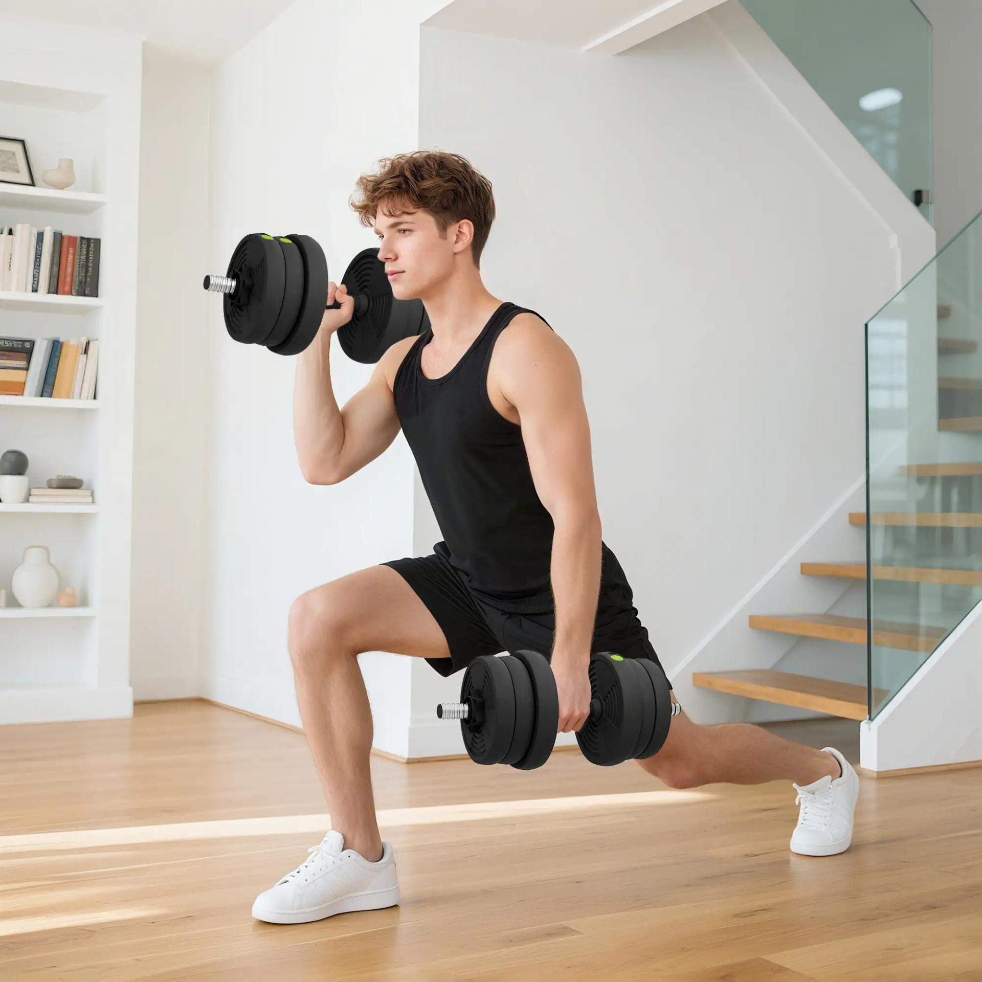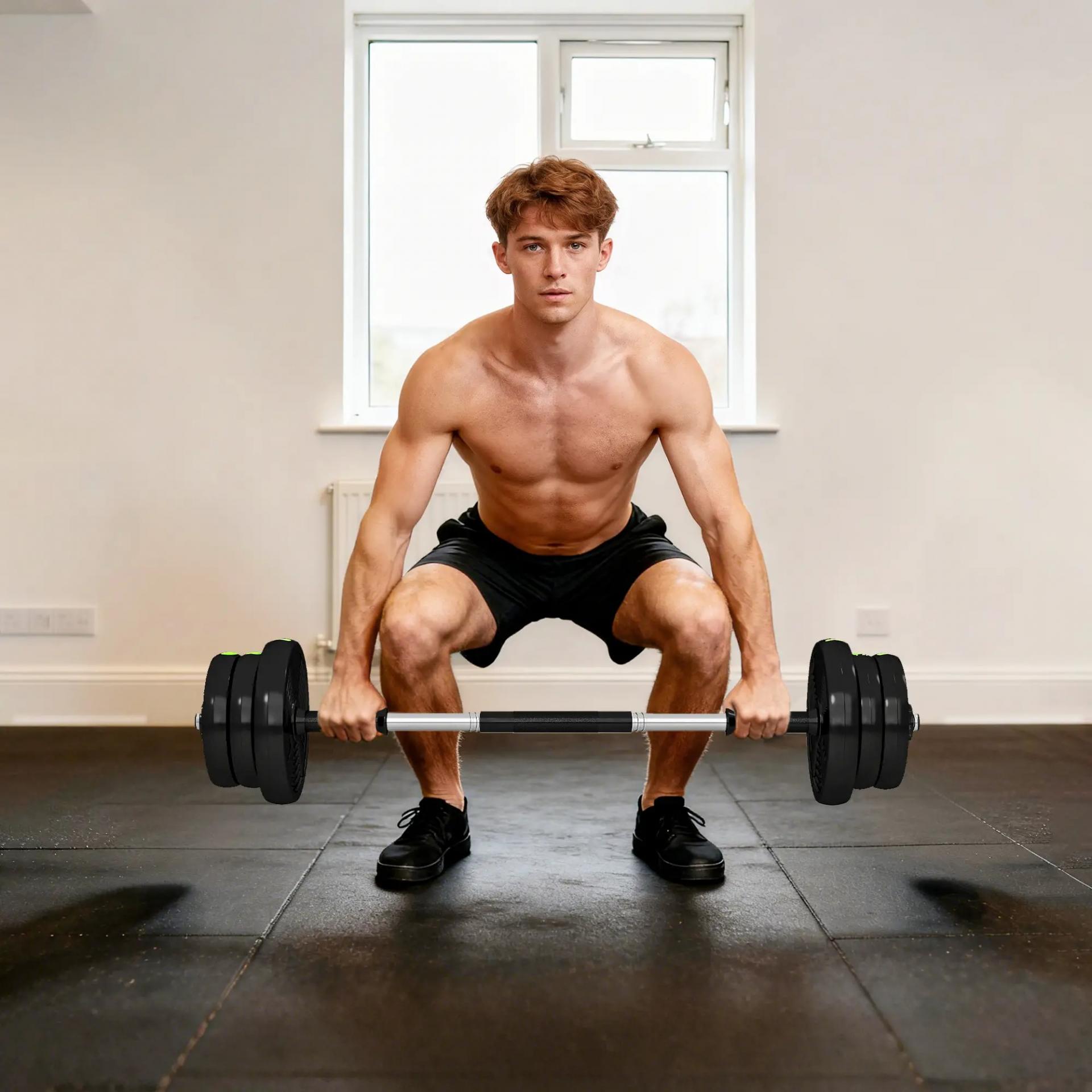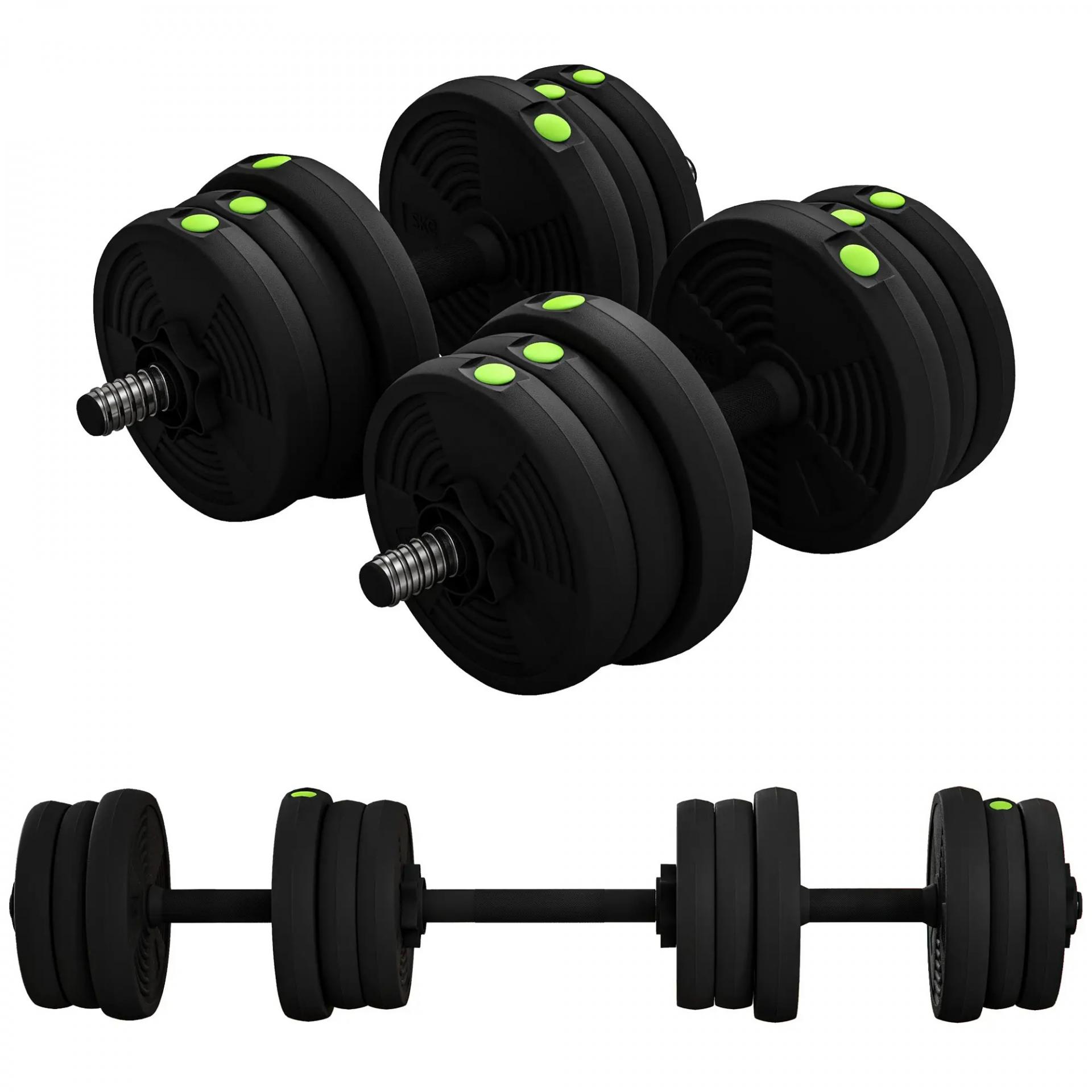Kit de Mancuernas 20kg 2 en 1 con Barra de Pesas Mango Antideslizante para Entrenamiento de Fuerza Negro Verde