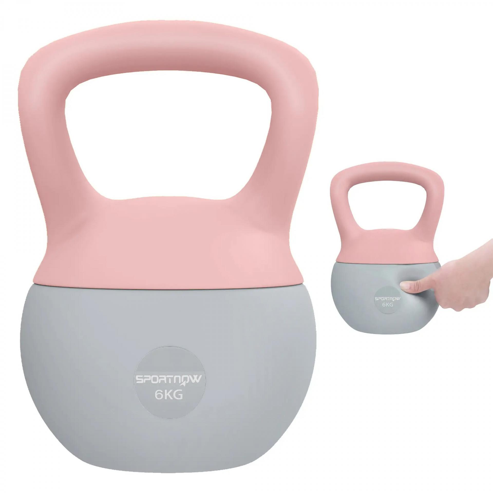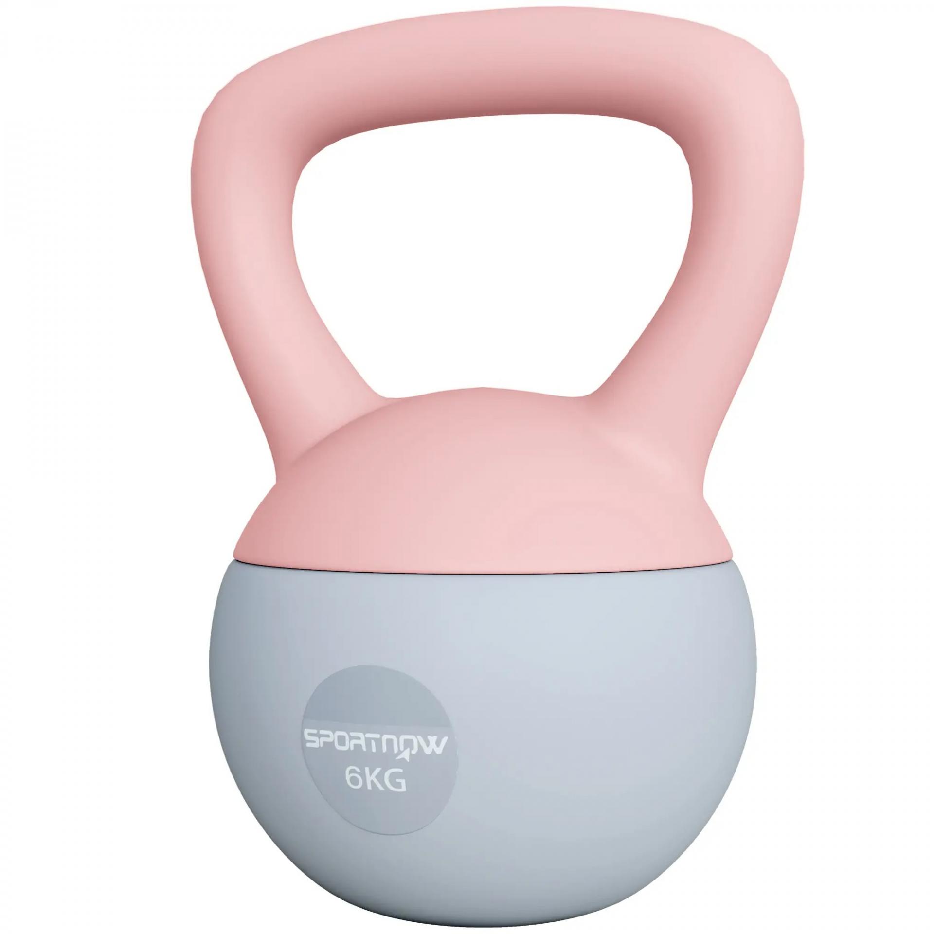 Pesa Rusa 6 kg Kettlebell Relleno de Arena Metálica y Mango Antideslizante para Entrenamiento en Casa 19x19x28 cm Rosa