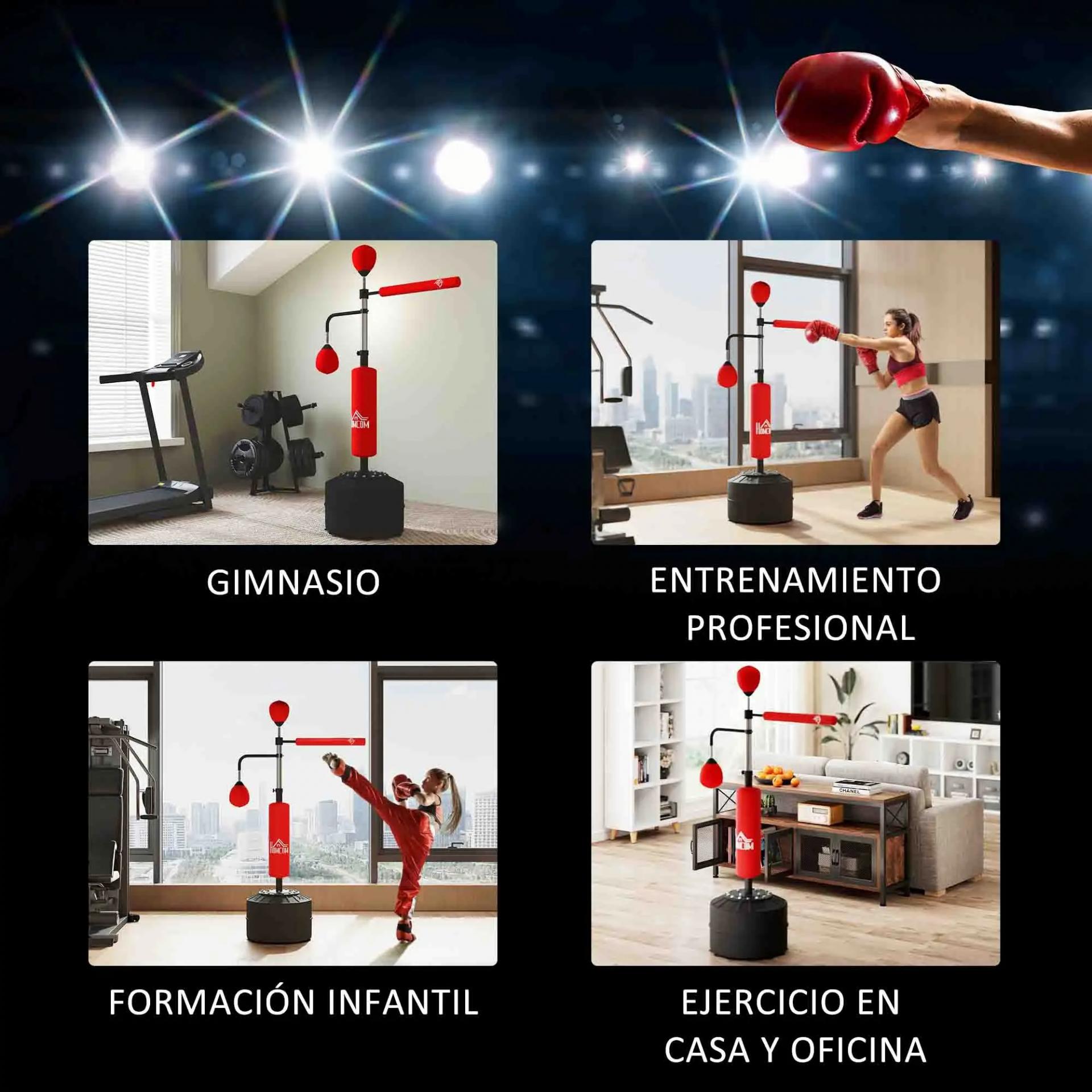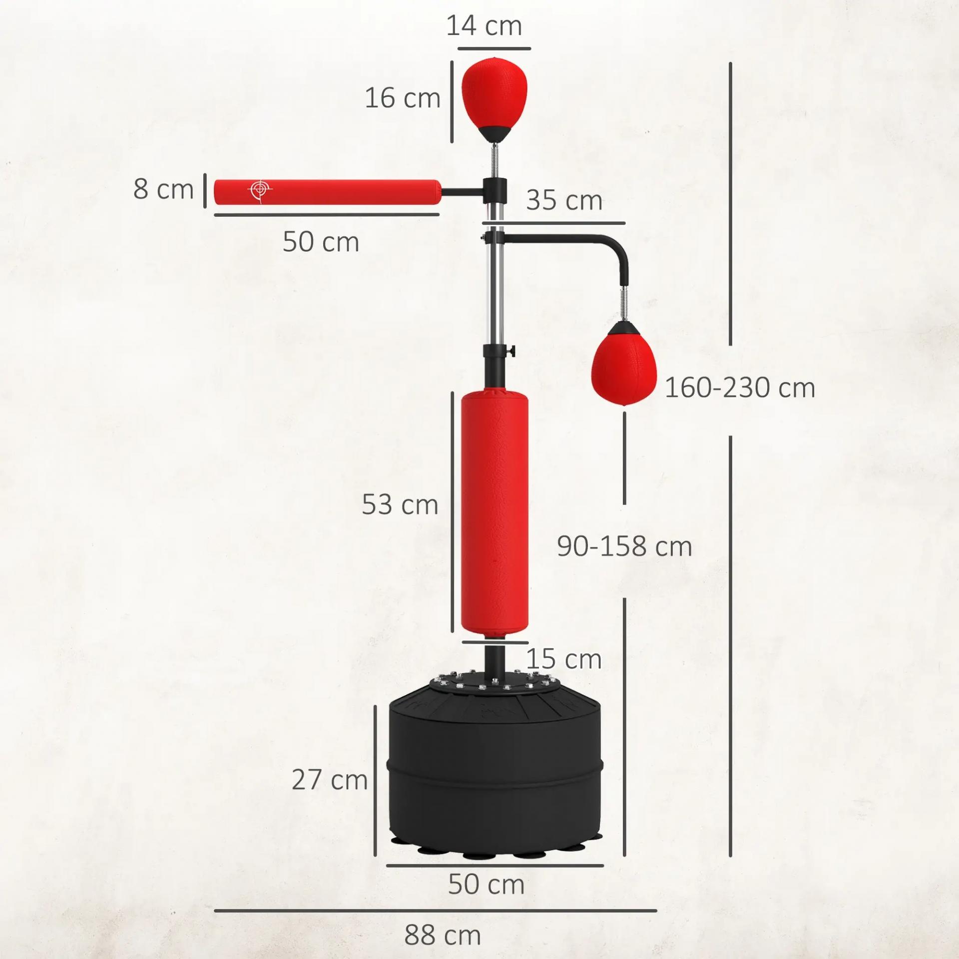 Saco de Boxeo de Pie Ajustable en Altura con Barra Giratoria de 360° 2 Bolas y Base Rellenable 88x50x160-230 cm Rojo