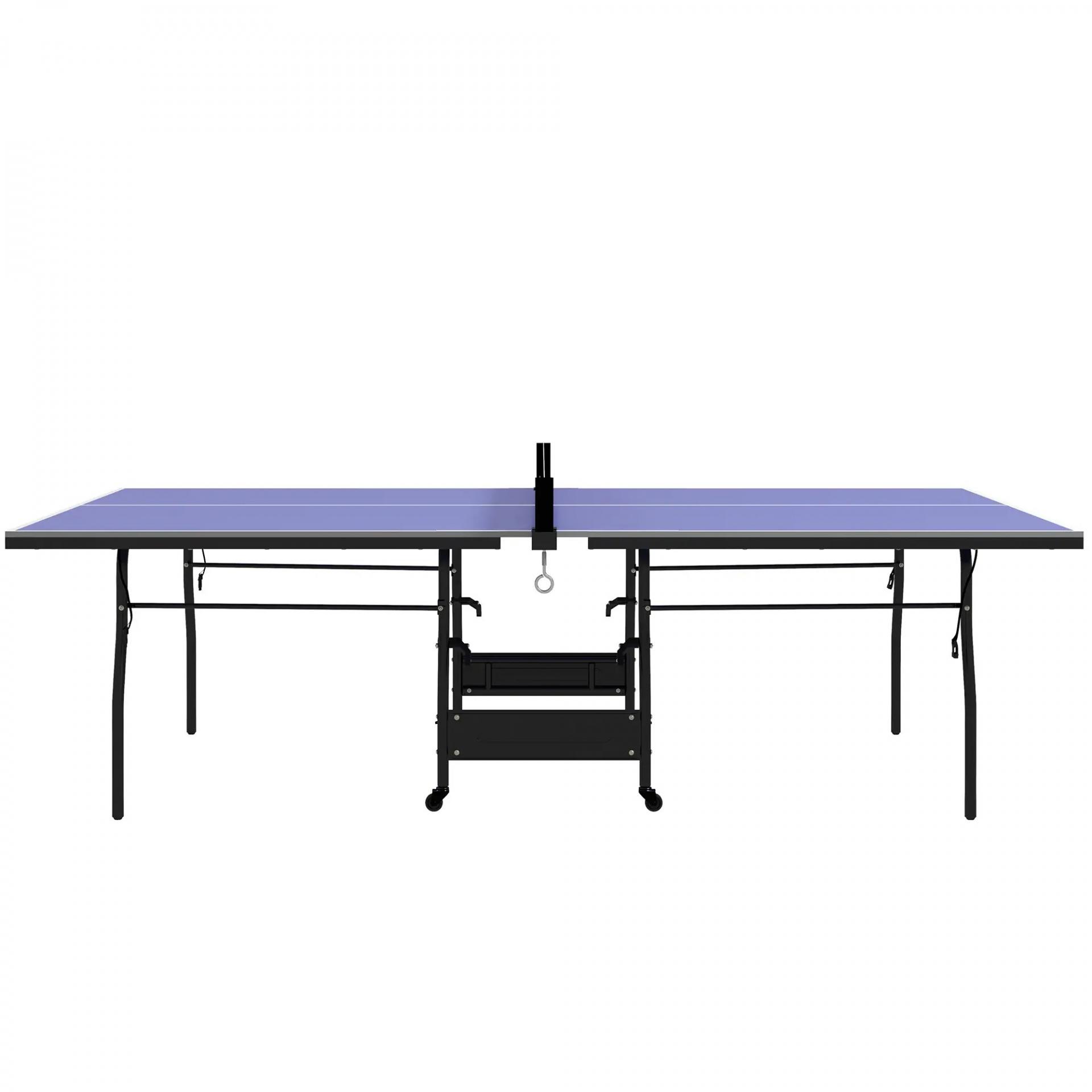 Mesa de Ping-Pong Tamaño Estándar con 4 Ruedas Red 2 Paletas y 3 Pelotas para Interior 274x152,5x76 cm Azul