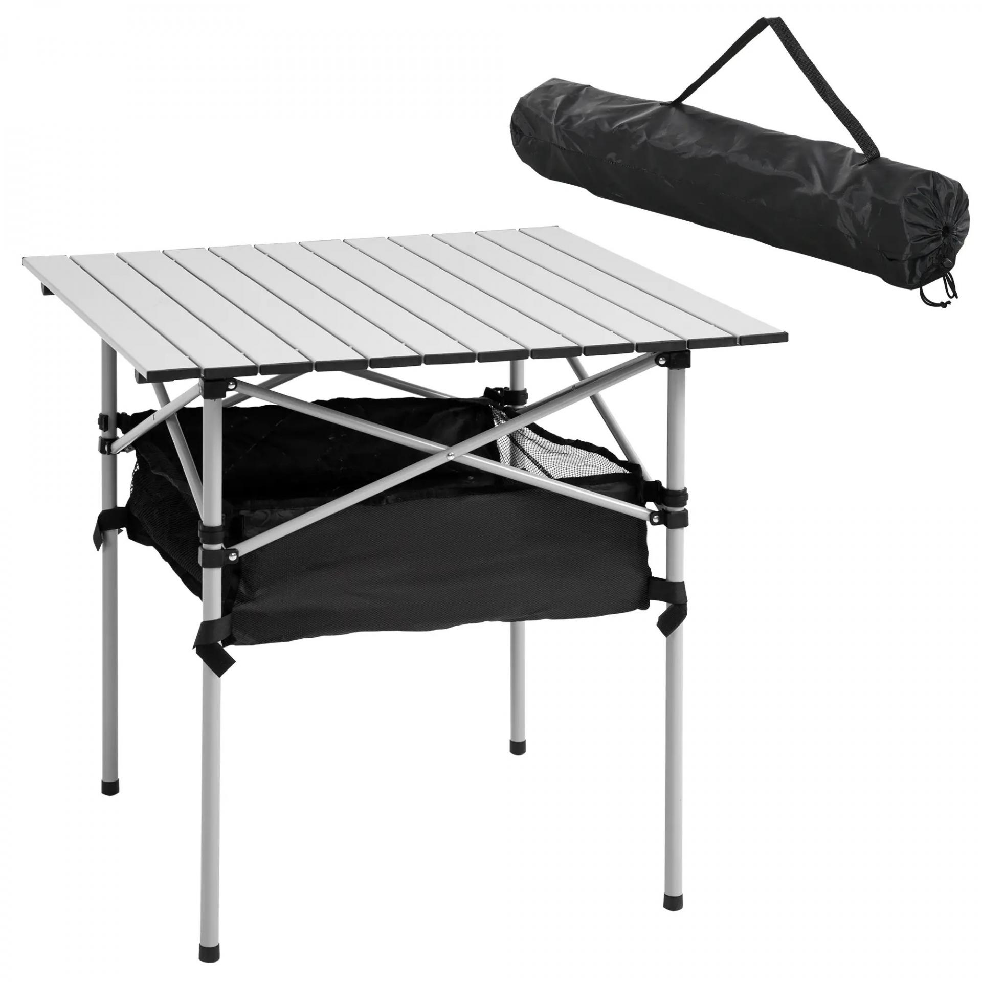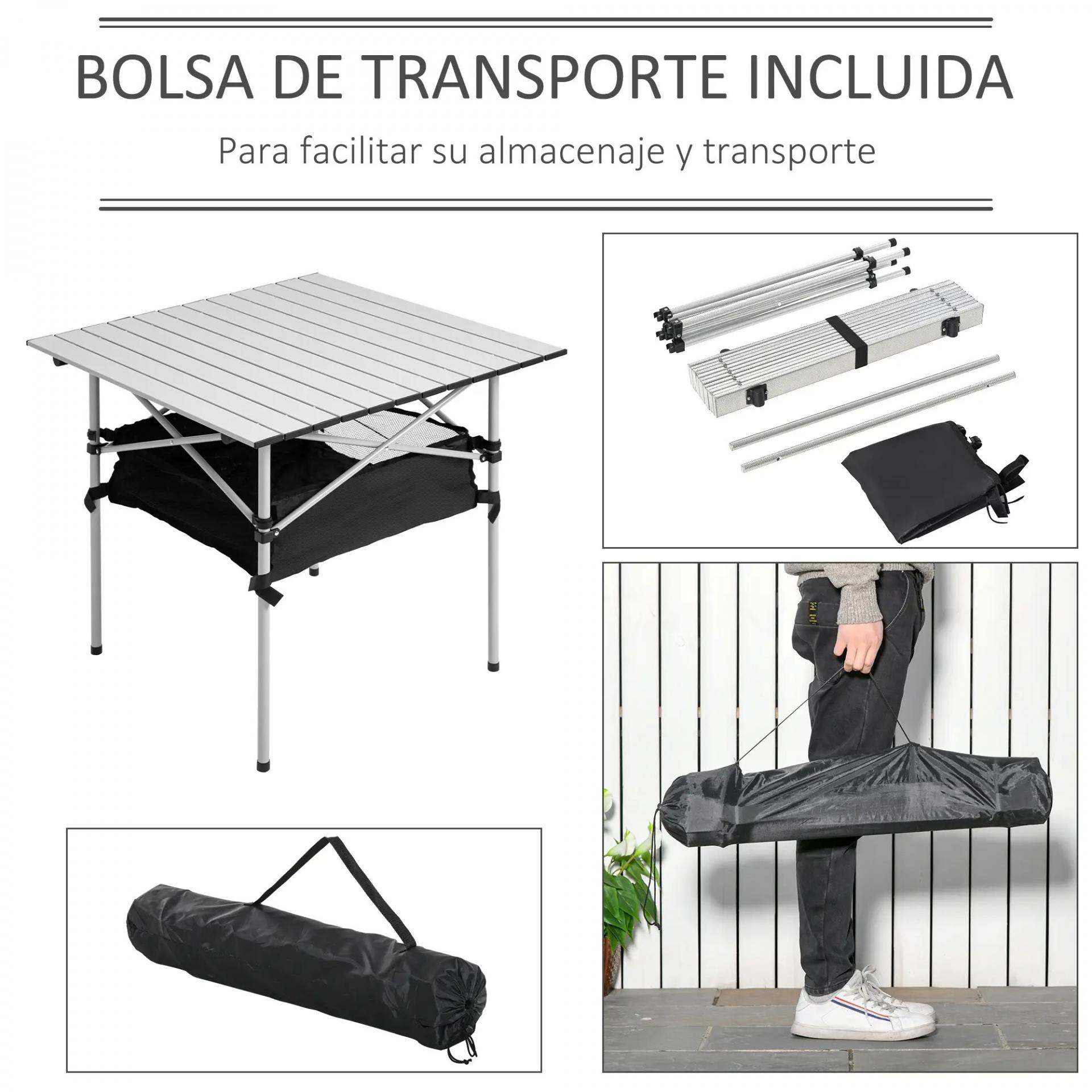 Mesa de Camping Plegable con Almacenaje de Malla y Bolsa de Transporte para Exterior Jardín y Picnic 70x70x69 cm Plata