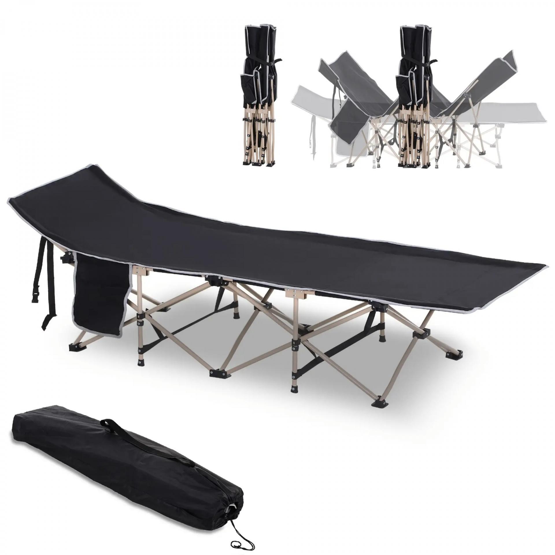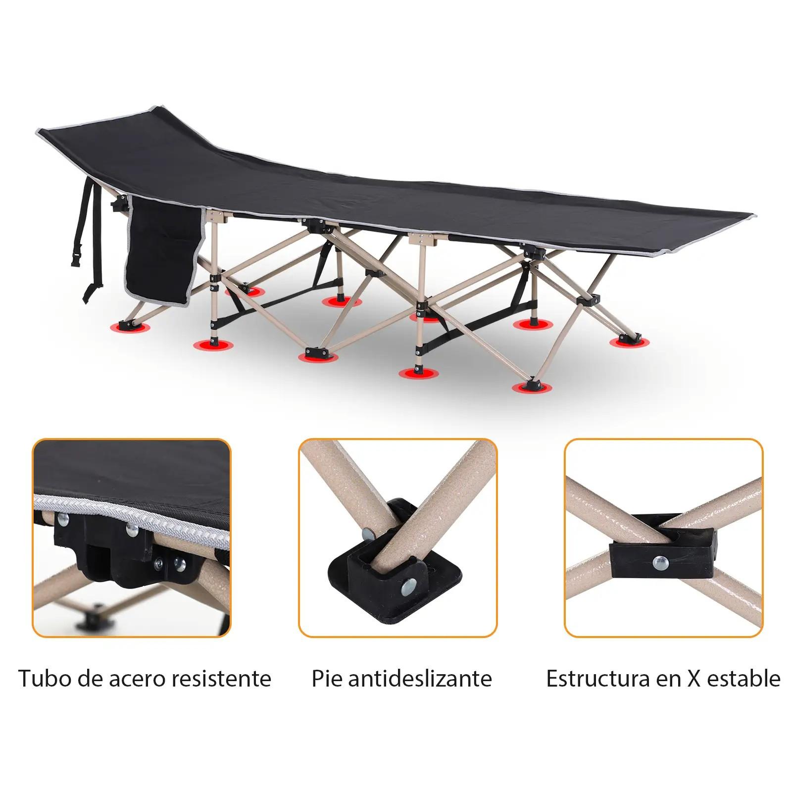 Cama de Acampada con 1 Bolsillo Lateral Bolsa de Transporte y Marco de Acero Carga 150 kg 190x68x52 cm Negro
