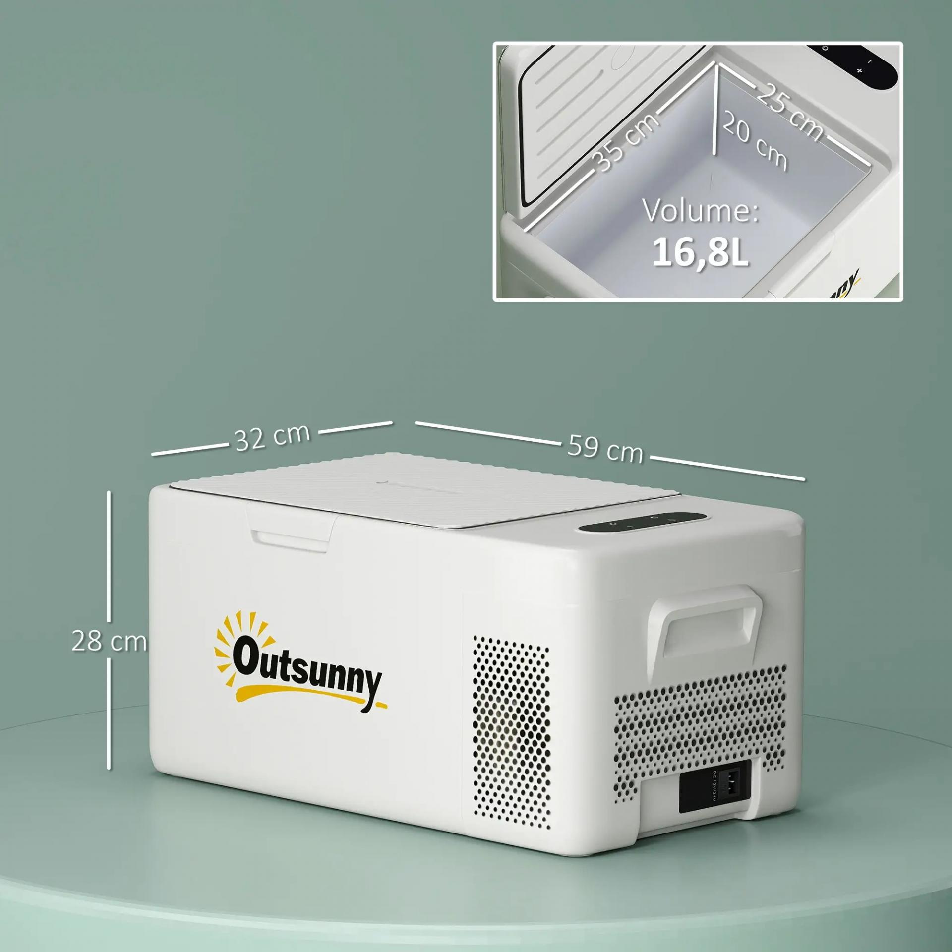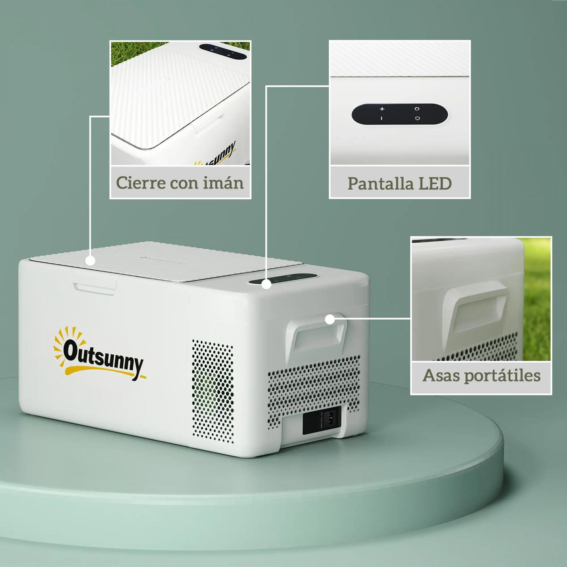 Nevera Portátil Eléctrica 16,8L Refrigerador de Coche 12/24/220V -20℃ a +20 ℃ con Pantalla Luz LED 59x32x26 cm Blanco