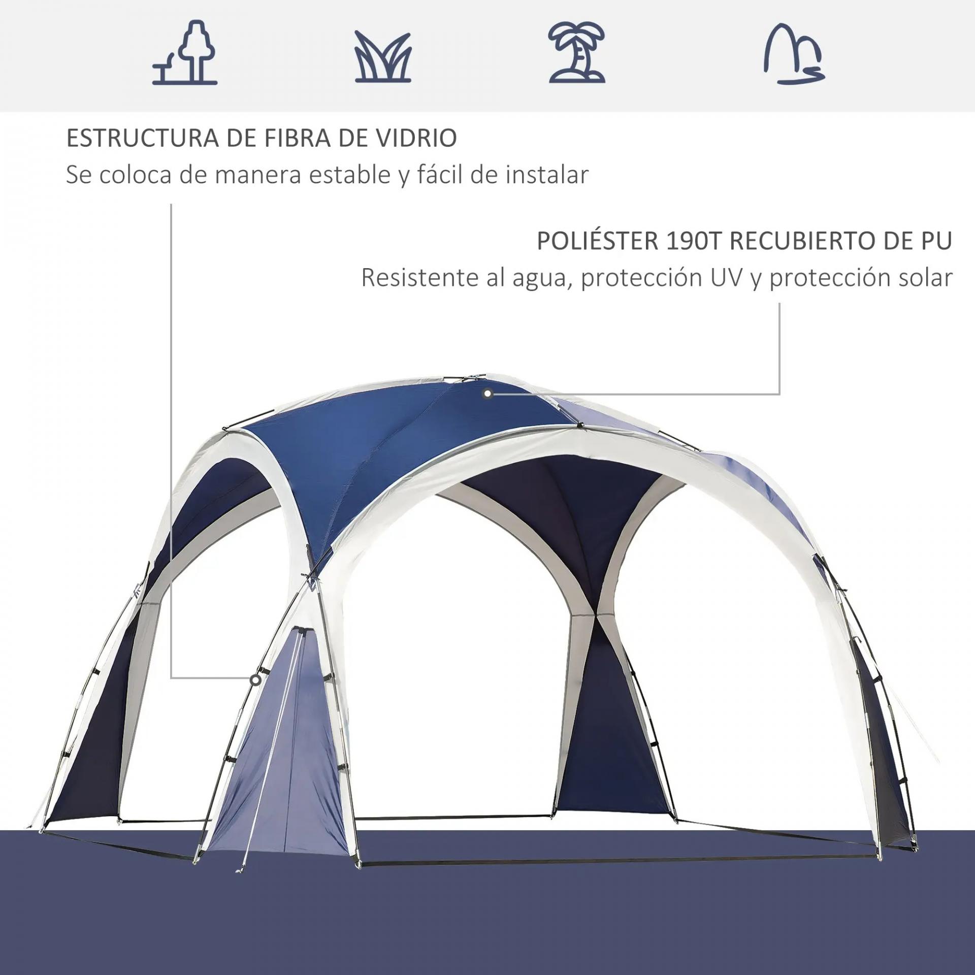 - - ESPACIO AMPLIO: Con un diseño en forma de cúpula y con unas medidas de 3,5x3,5 m, este toldo para camping proporciona un amplio espacio interior. Es ideal para acomodar una mesa con sillas, nevera, y mucho más. También tiene un gancho en la parte superior ideal para colgar una lámpara
