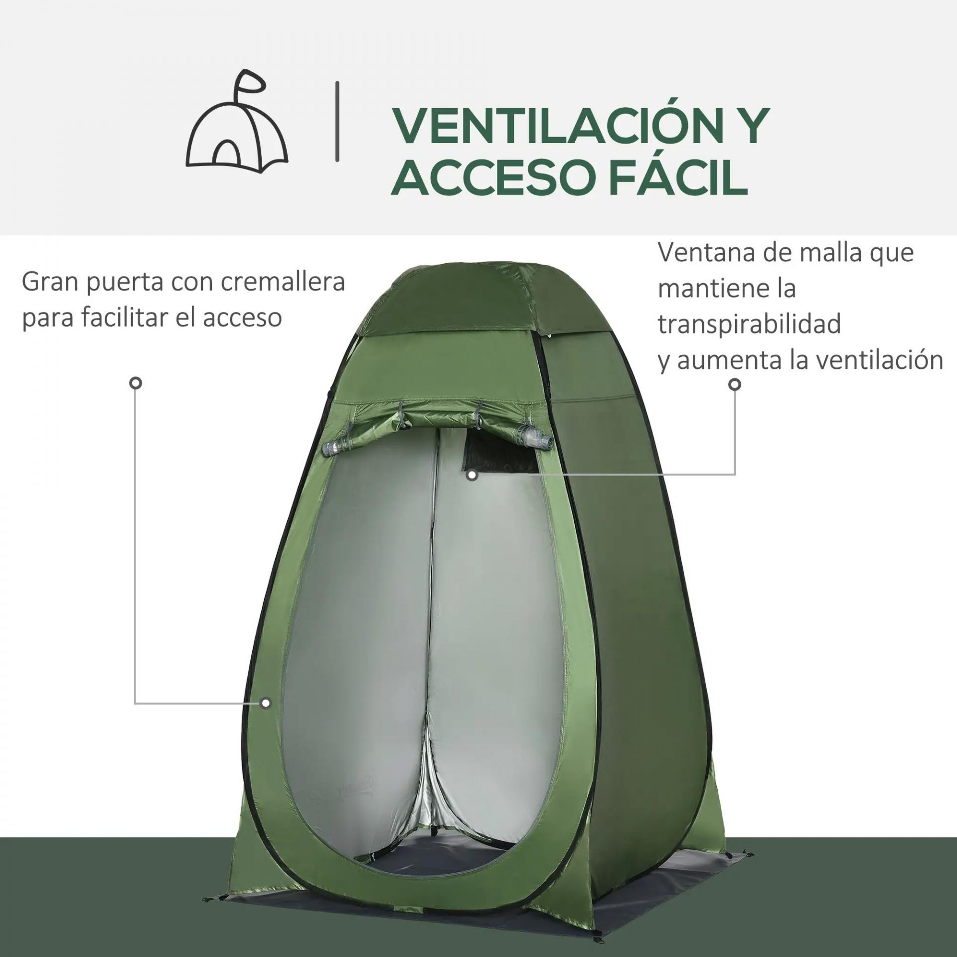 - - FUNCIONAL Y PORTÁTIL: Esta tienda de campaña incluye un bolsillo para guardar productos de higiene, un suelo removible con drenaje y una bolsa de transporte para facilitar su almacenamiento y traslado