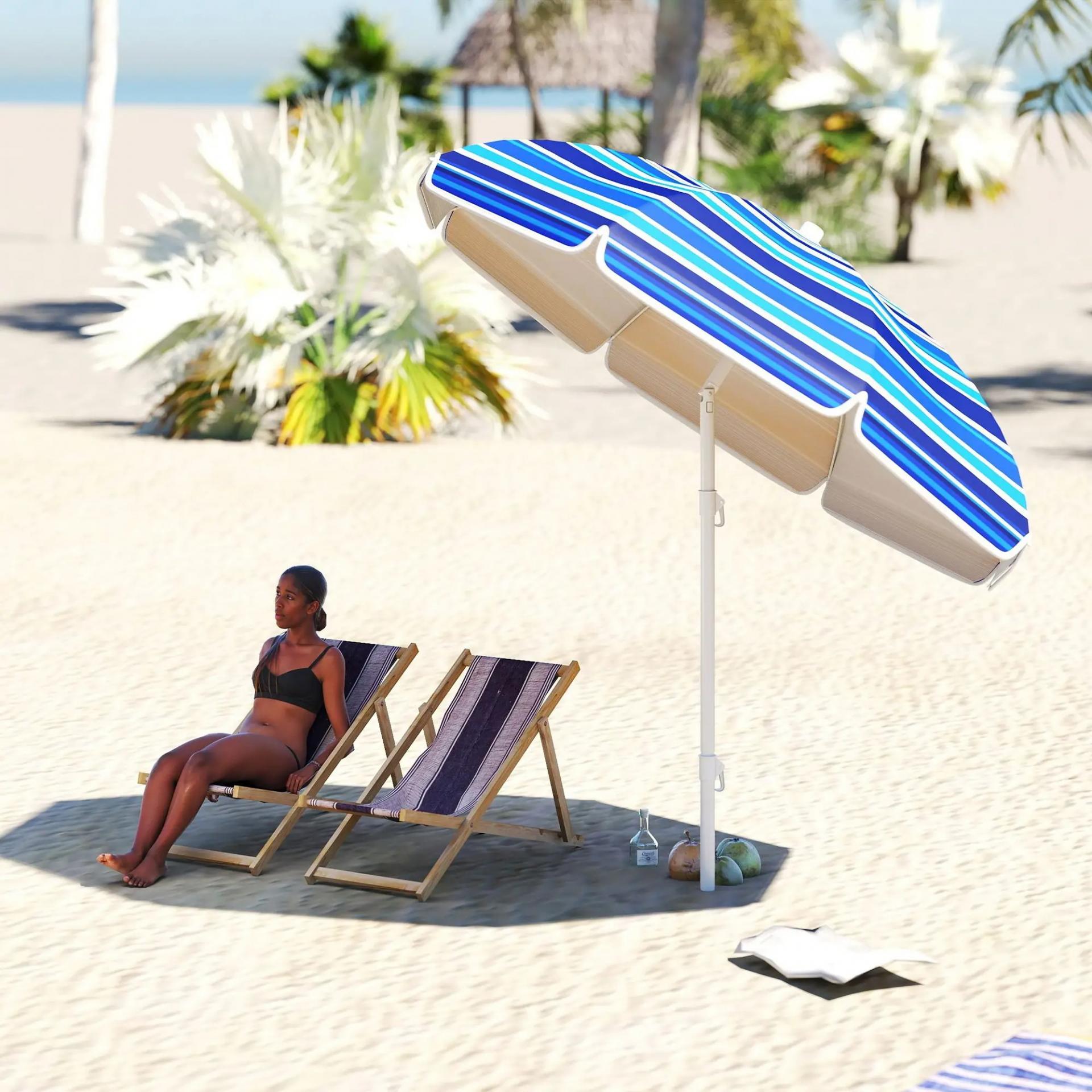 Sombrilla de Playa Grande con Protección UV UPF50+ Inclinación Ajustable y Bolsa de Transporte Ø180x196 cm Multicolor