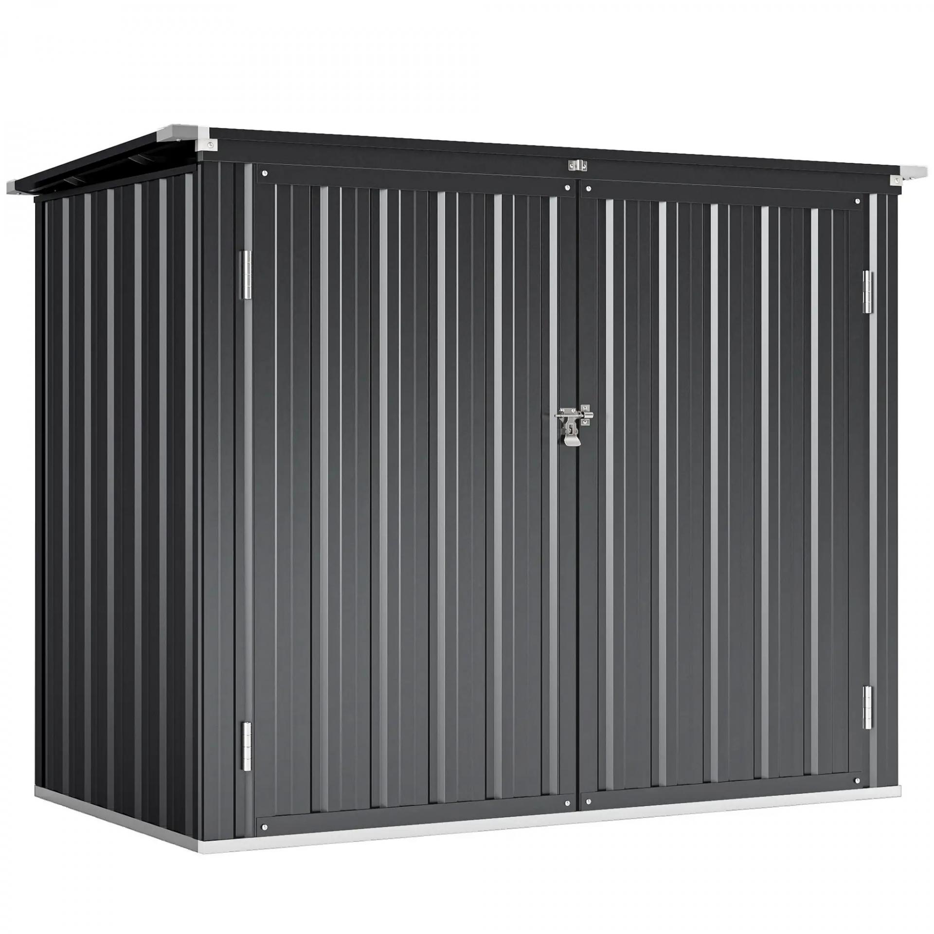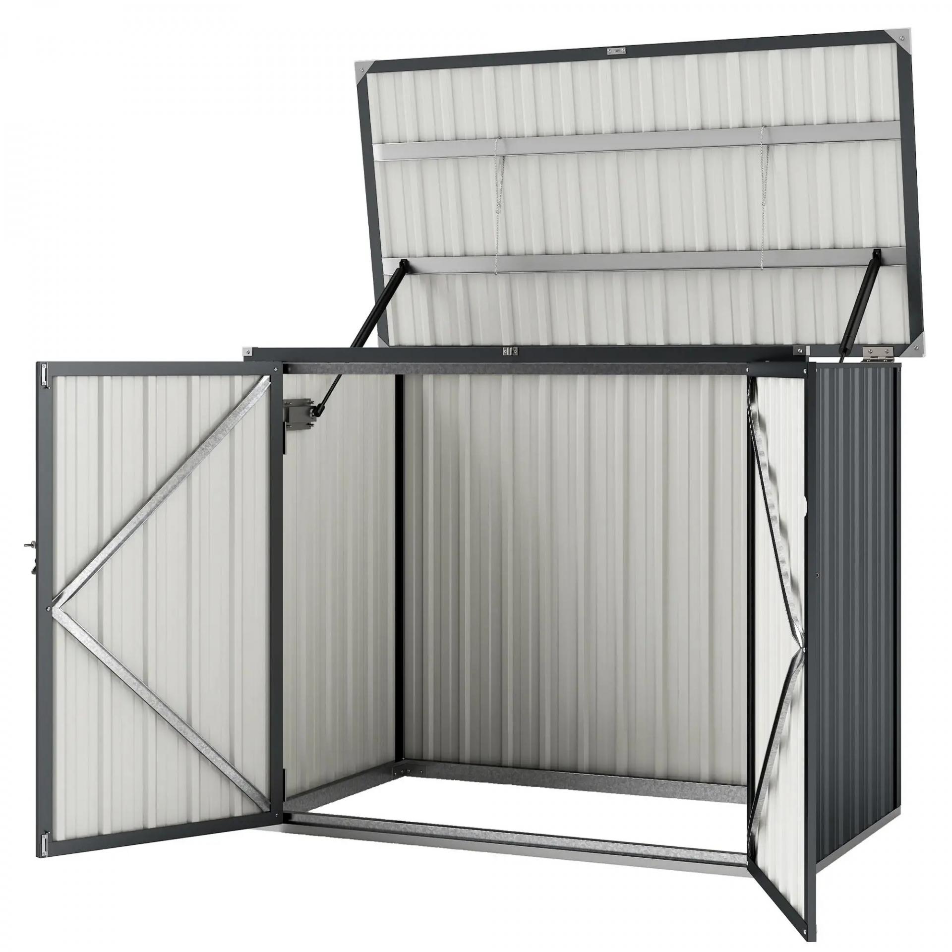 - - MEDIDAS TOTALES: 150x80x117/115 cm (ANxPxAL). Este cobertizo para contenedor de basura no solo acomoda un contenedor con ruedas, sino que también ofrece espacio para herramientas, escaleras, tiendas de campaña y otros artículos esenciales para exteriores