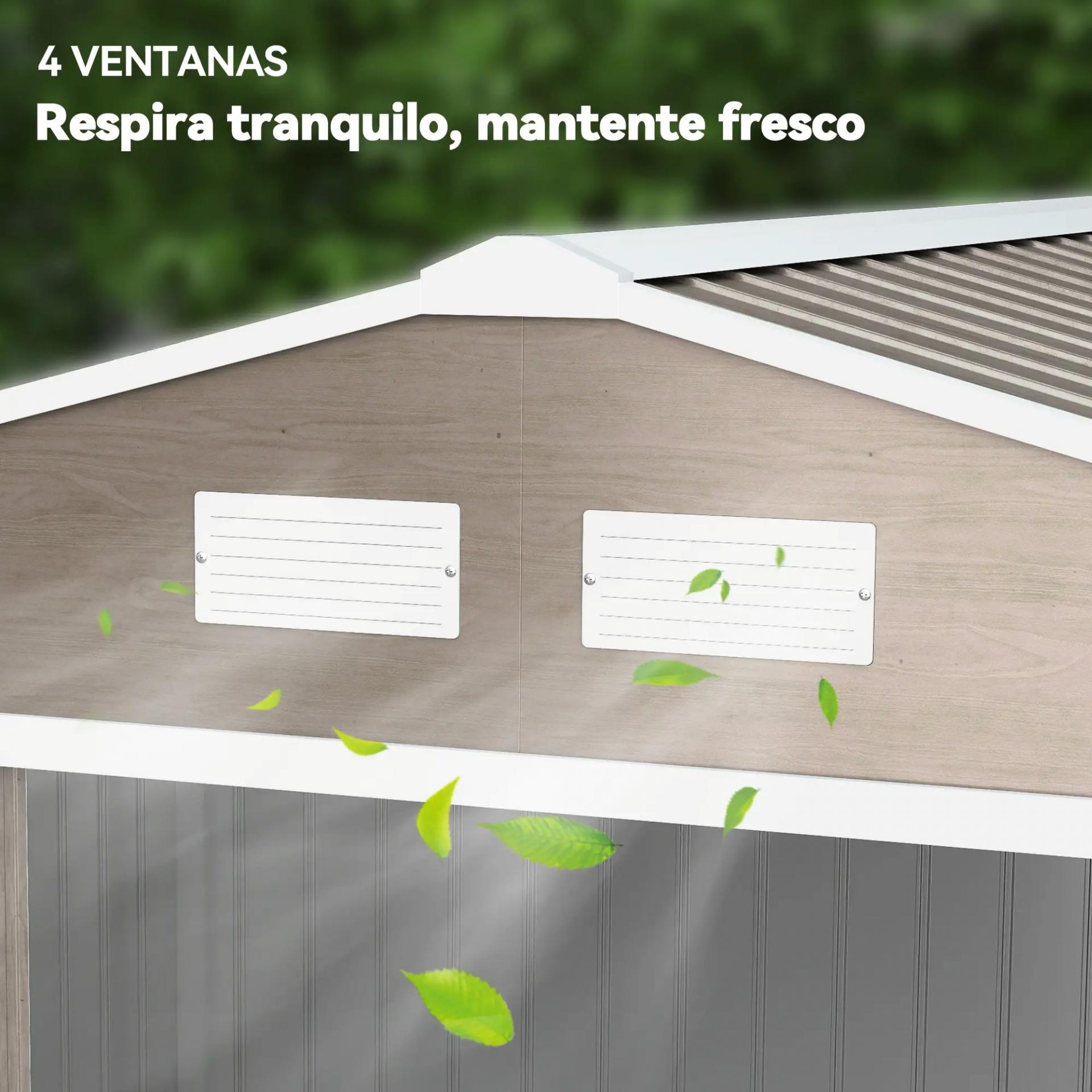 - - BUENA VENTILACIÓN: El cobertizo de jardín de acero cuenta con 4 rejillas de ventilación en la parte superior, dos en la parte frontal y dos en la parte posterior. Garantizan una buena ventilación, evitando la humedad y la aparición de moho en las herramientas y demás equipos