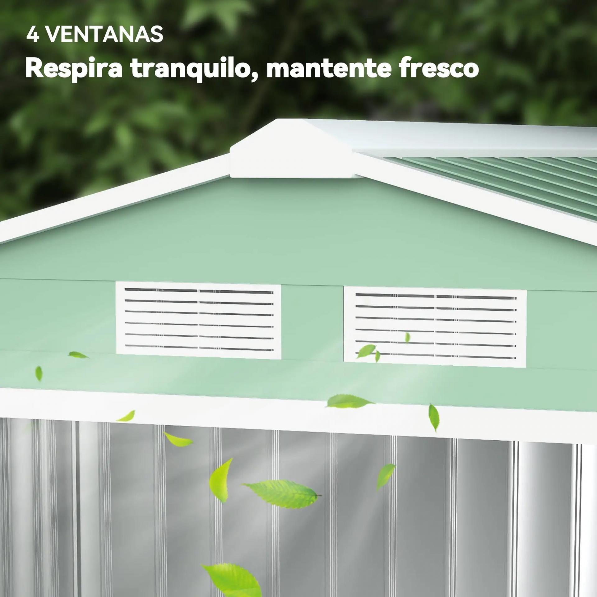 Caseta de Jardín 213x130x185 cm Cobertizo de Exterior Metálico para Almacenamiento de Herramientas Verde Claro