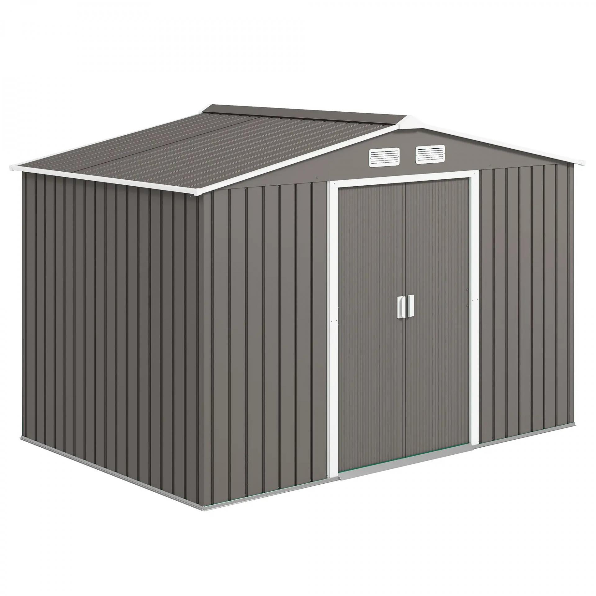 Cobertizo de Jardín 4,9 m² 277x195x192 cm con 2 Puertas Corredizas Base Refuerzo (Suelo NO Incluido) Gris