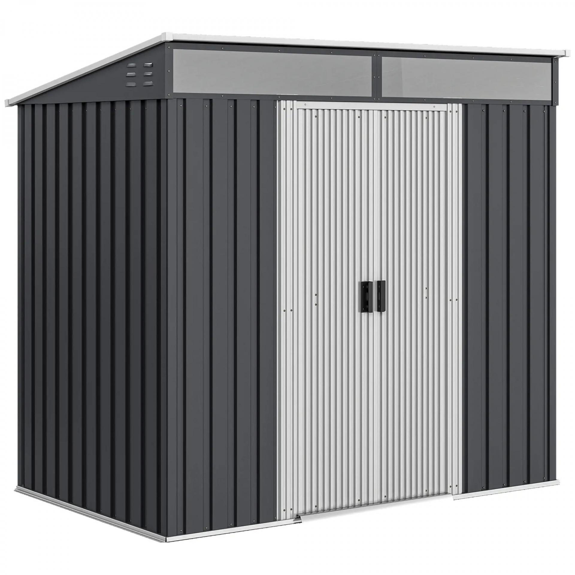 Caseta de Jardín 195x122x181,5 cm con Puerta Corredera 2 Ventanas y Anti-UV para Almacenar Herramientas Gris Oscuro