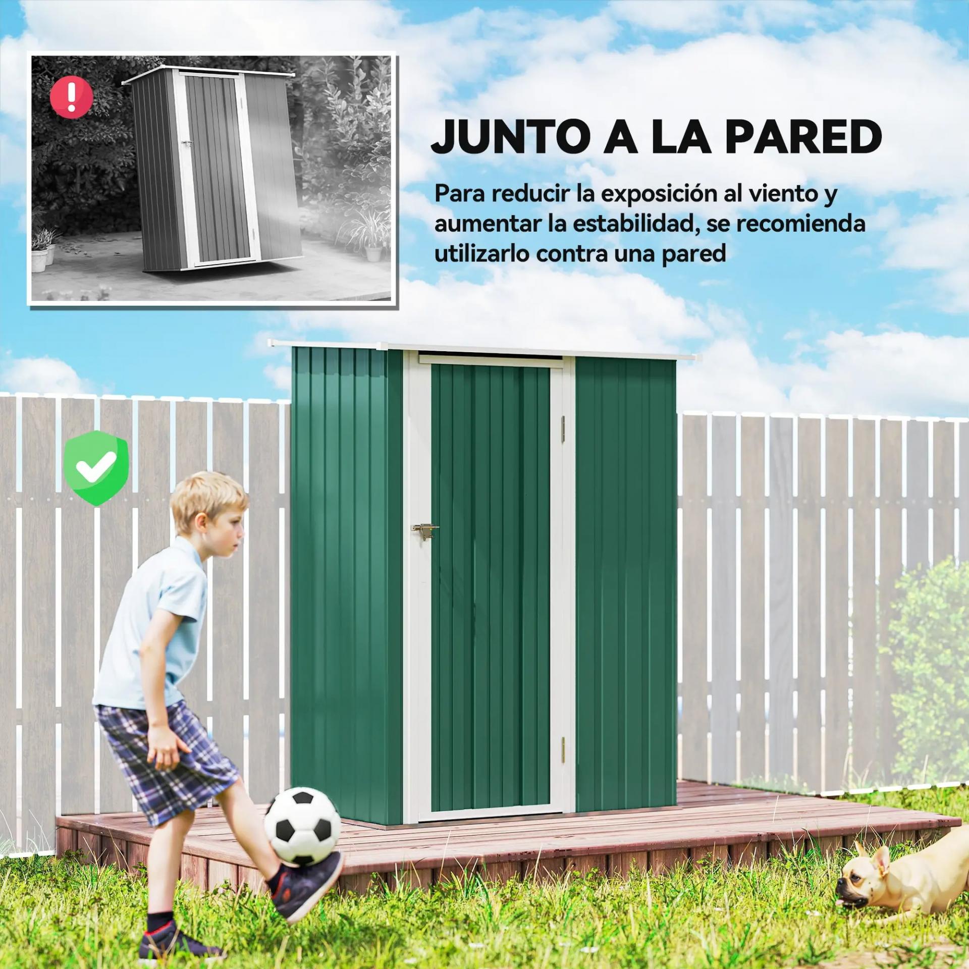 - - TECHO INCLINADO: La inclinación del techo de esta caseta de almacenamiento evita que el agua se acumule y estanque, evitando así el deterioro de la estructura y oxidación. Apto para su uso a largo plazo