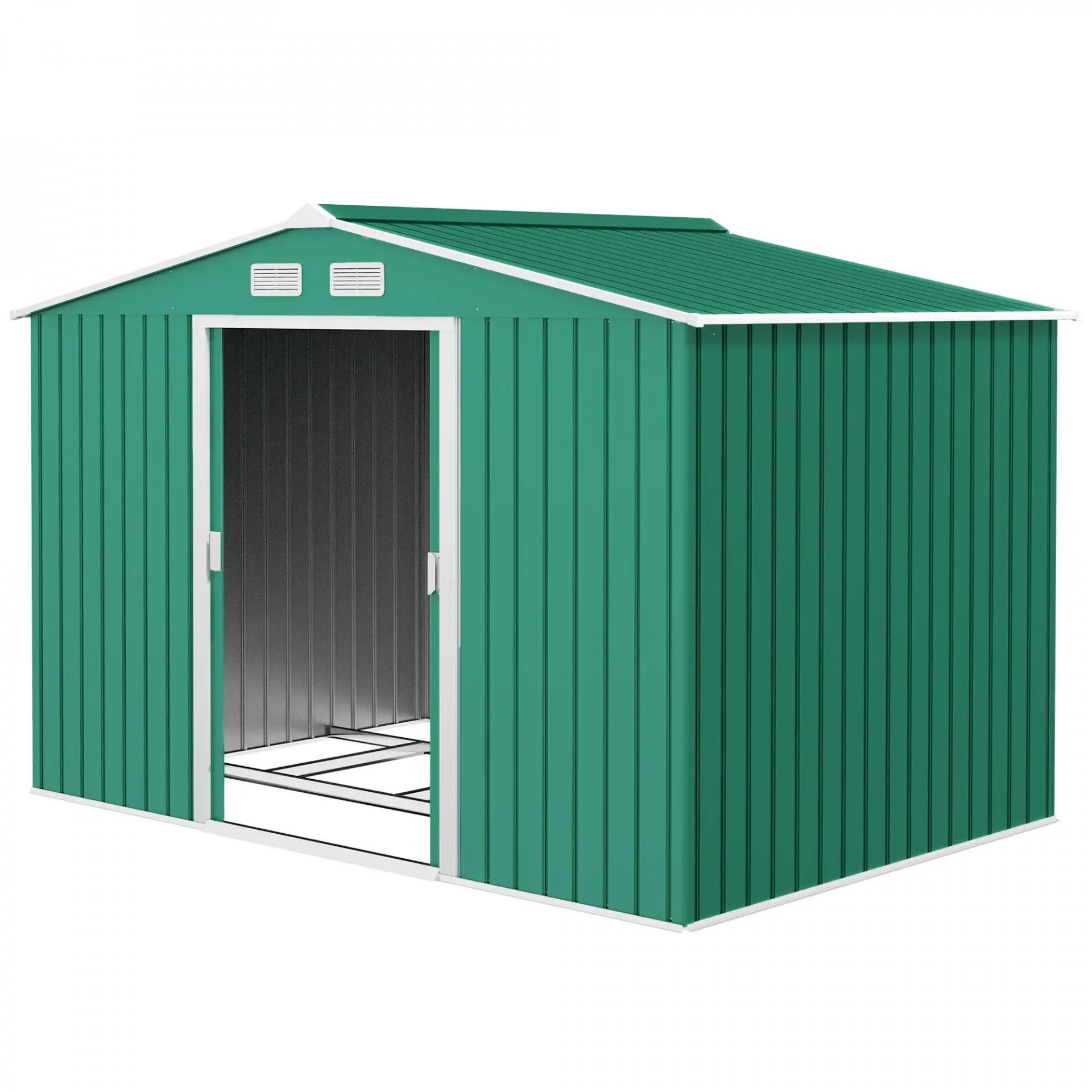 Cobertizo de Jardín 4,9 m² 277x195x192 cm con 2 Puertas Corredizas Base Refuerzo (Suelo NO Incluido) Verde Oscuro