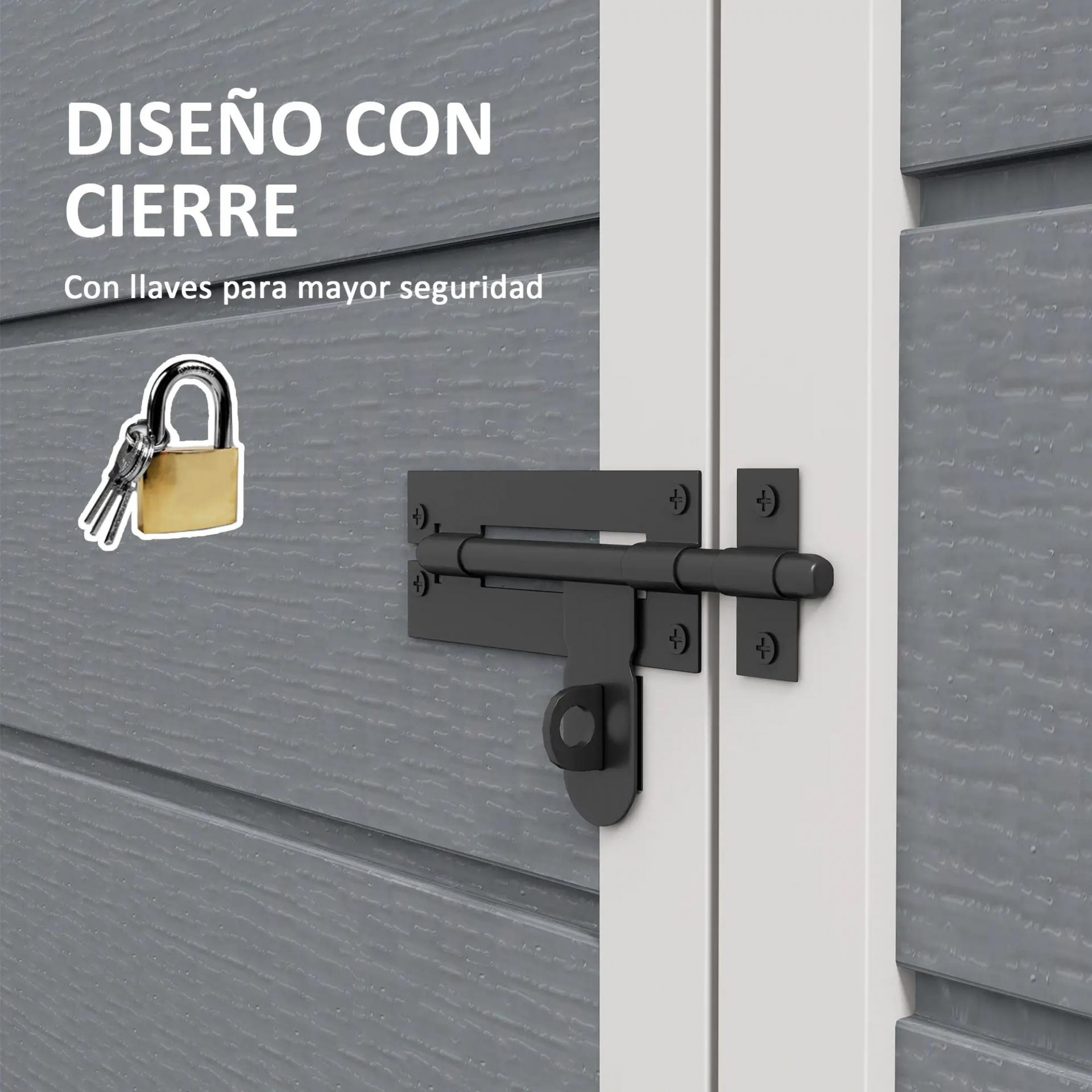 - - PUERTA CON CERRADURA: Este cobertizo de jardín exterior incorpora una puerta con cerrojo, candado y llave para proteger herramientas, productos químicos o maquinaria, evitando accesos no deseados de niños o mascotas