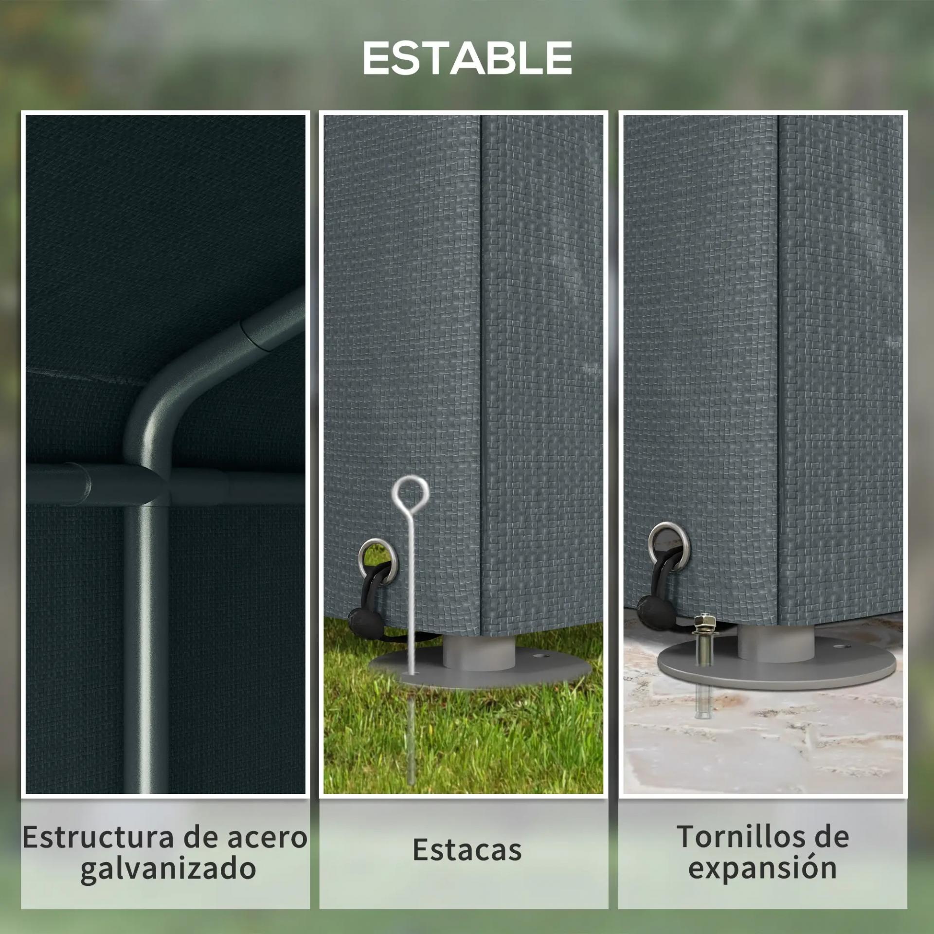 - - ACCESO CONVENIENTE: Disfrute de un fácil acceso a sus artículos guardados con la puerta grande con cremallera, perfecta para recuperar rápidamente herramientas de jardinería o bicicletas.