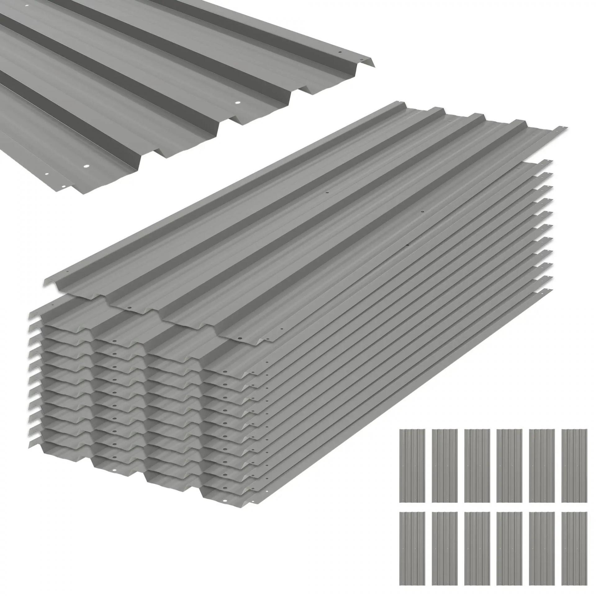 Juego de 12 Paneles para Tejado de Acero Galvanizado 7m² para Caseta de Herramientas Cobertizo 129x45cm Gris Claro