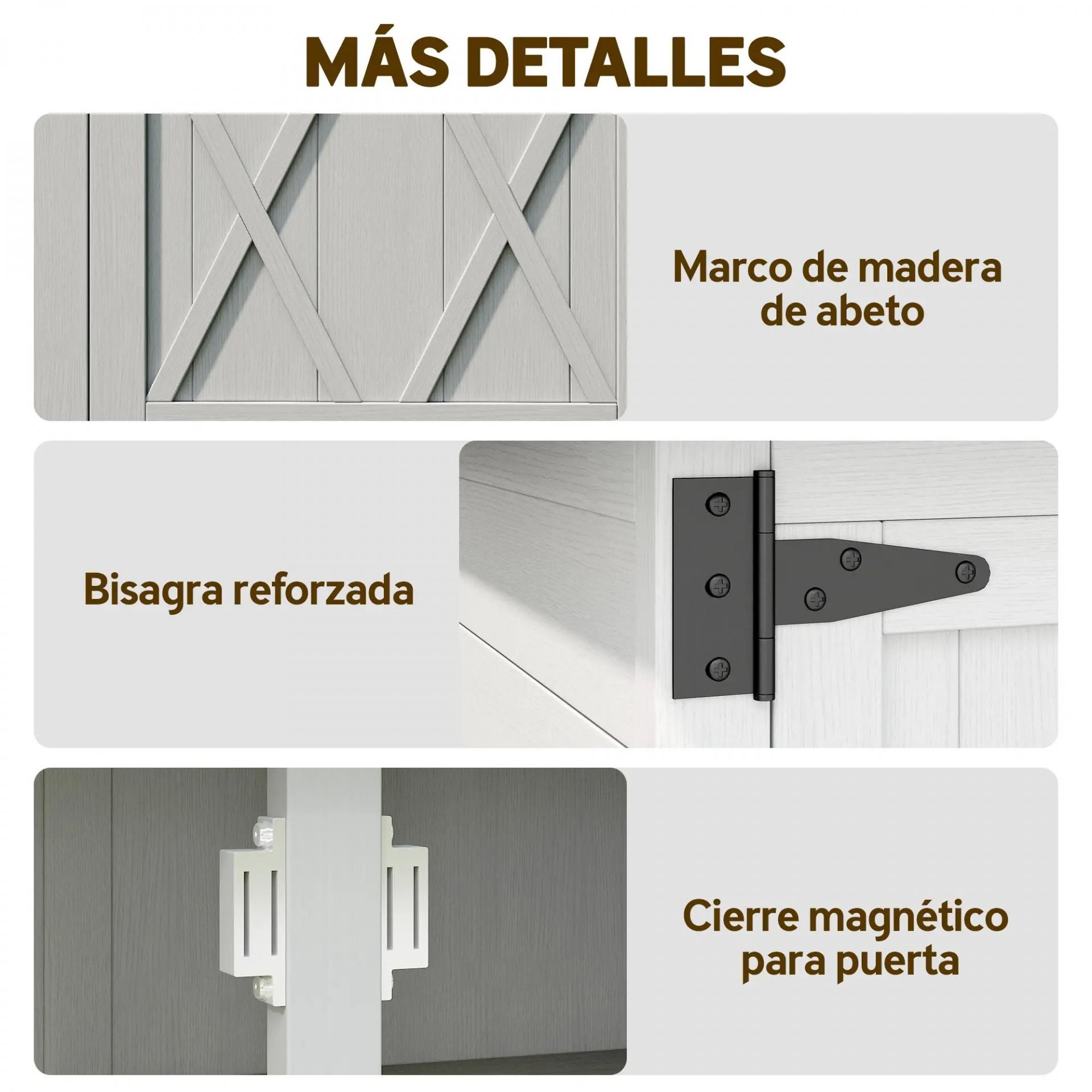 - - CUERPO DE MADERA DE ABETO: Resistente estructura con pintura impermeable que protege de líquidos, desgaste e intemperie, evitando la corrosión de la madera y cuidando tu interior