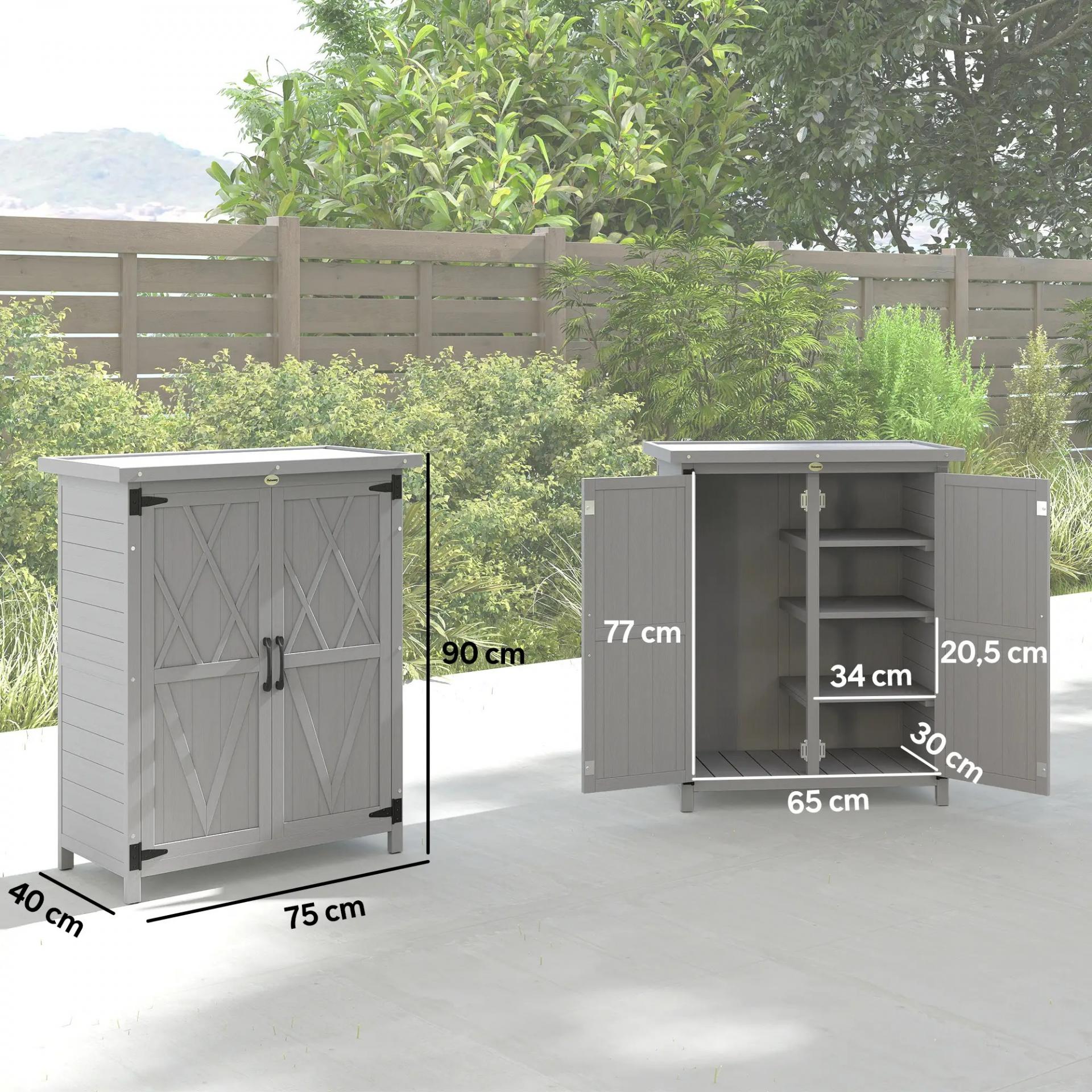 Caseta de Jardín de Madera 75x40x90 cm Armario para Almacenaje de Herramientas con 4 Estantes 2 Puertas Gris