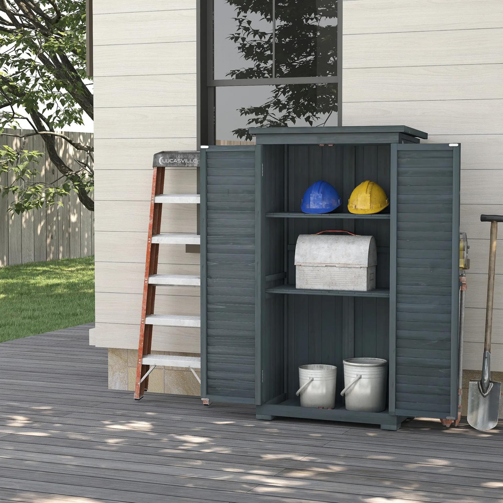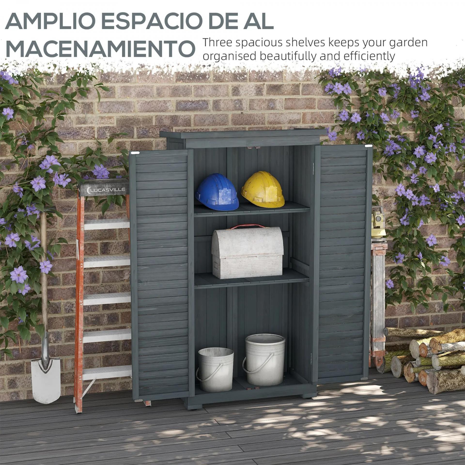 Cobertizo de Madera Caseta de Madera 0,31 m² 87x46,5x160 cm con 2 Puertas y 2 Estantes Interior Gris