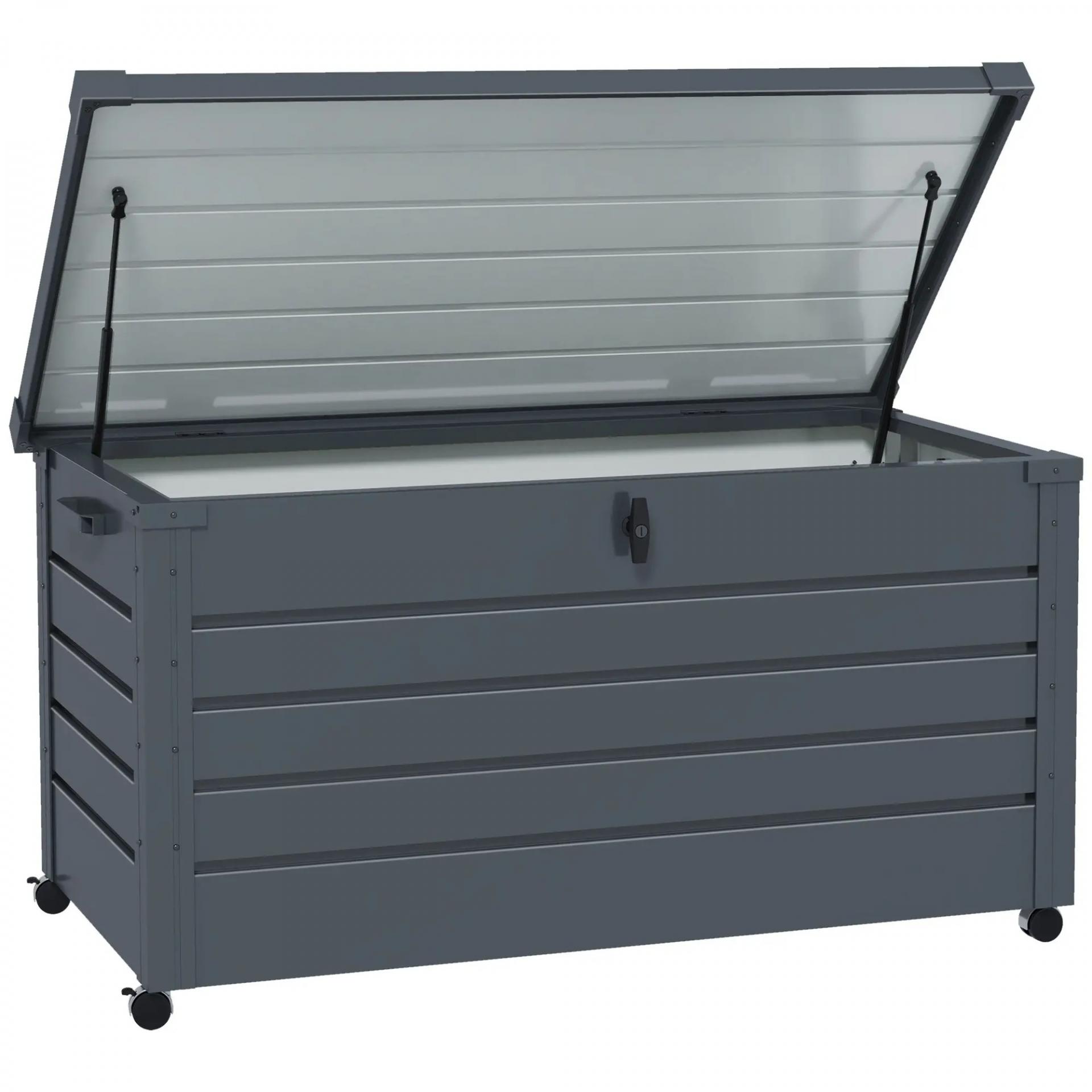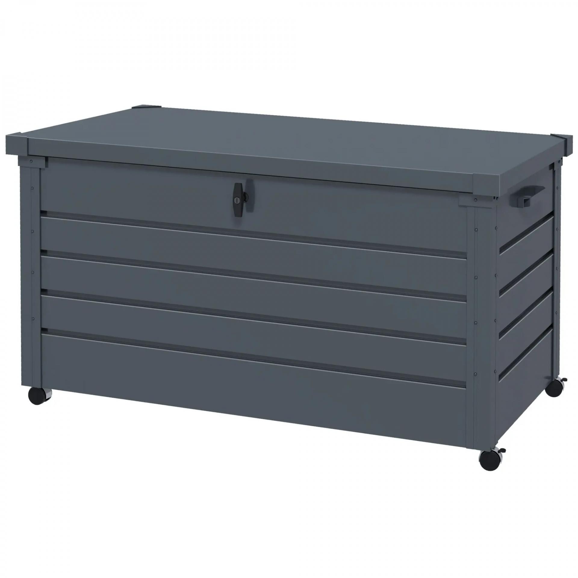 Baúl de Exterior de Acero Galvanizado con 4 Ruedas 2 Asas y 1 Cerradura con Llave 120x62x66 cm Gris Oscuro