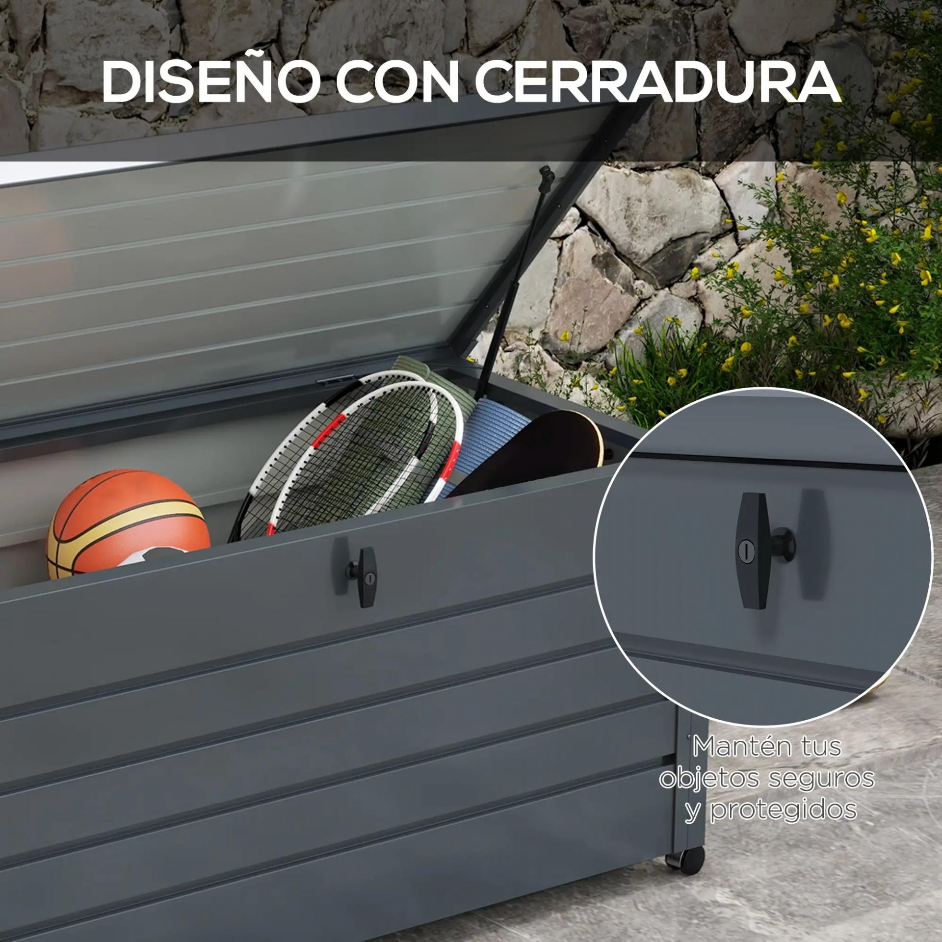 - BAÚL DE ALMACENAJE PARA EXTERIOR: Este baúl de exterior ofrece un amplio espacio de almacenamiento de 311 L, suficiente para guardar artículos como herramientas de jardín, cojines de muebles, juegos de jardín y accesorios