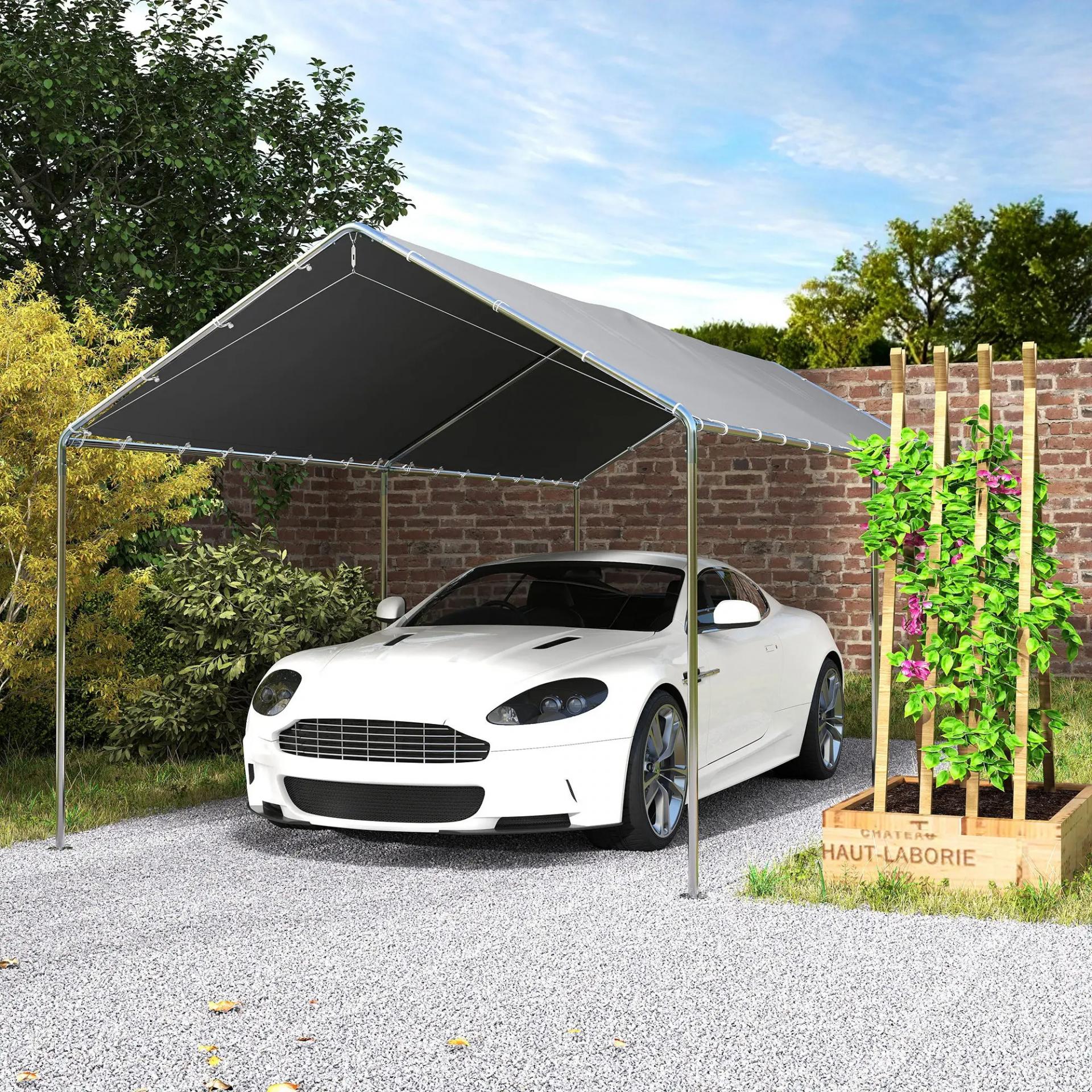 - ESPACIOSO: Cobertizo exterior de diseño abierto para fácil acceso, protege coches pequeños y medianos del clima. Ideal para hogares sin garaje ni refugio exterior
