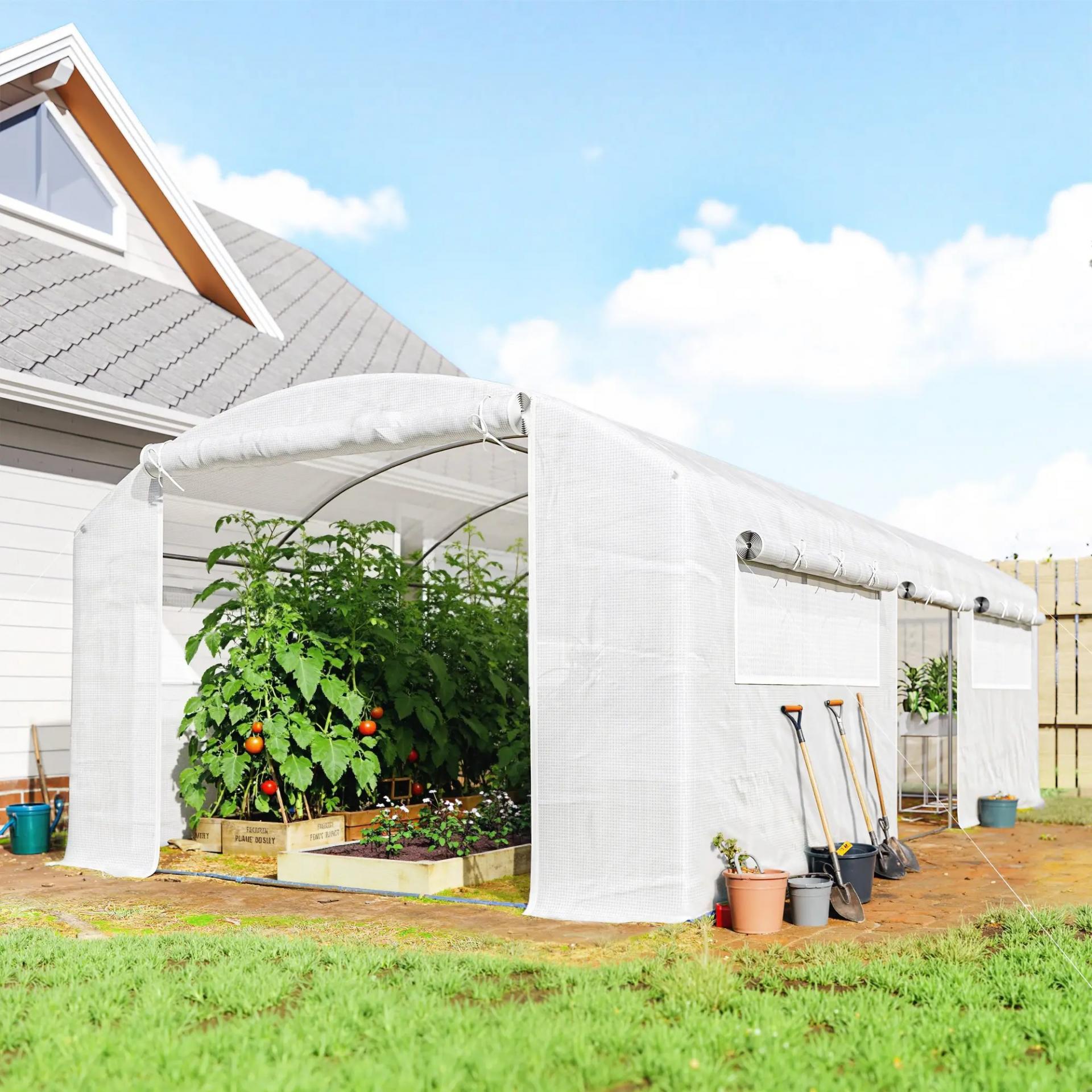 - PUERTAS Y VENTANAS MÚLTIPLES: Este invernadero de túnel ofrece amplio espacio para plantas y flores. Incluye tres puertas enrollables para un acceso cómodo y seis ventanas de malla que mejoran la ventilación y el flujo de aire fresco
