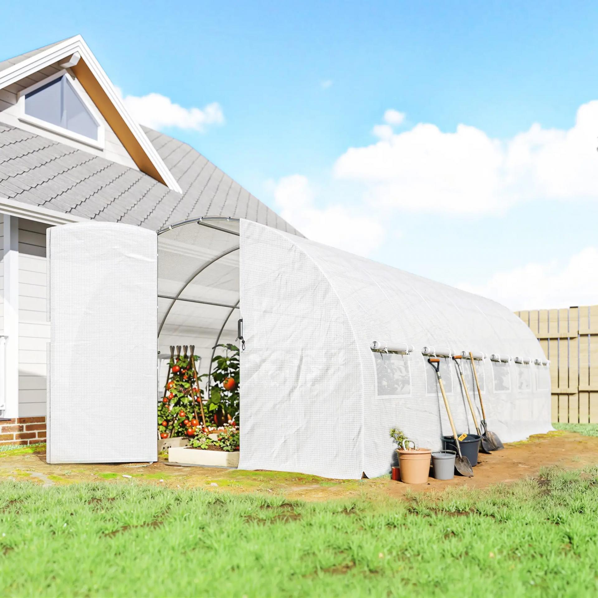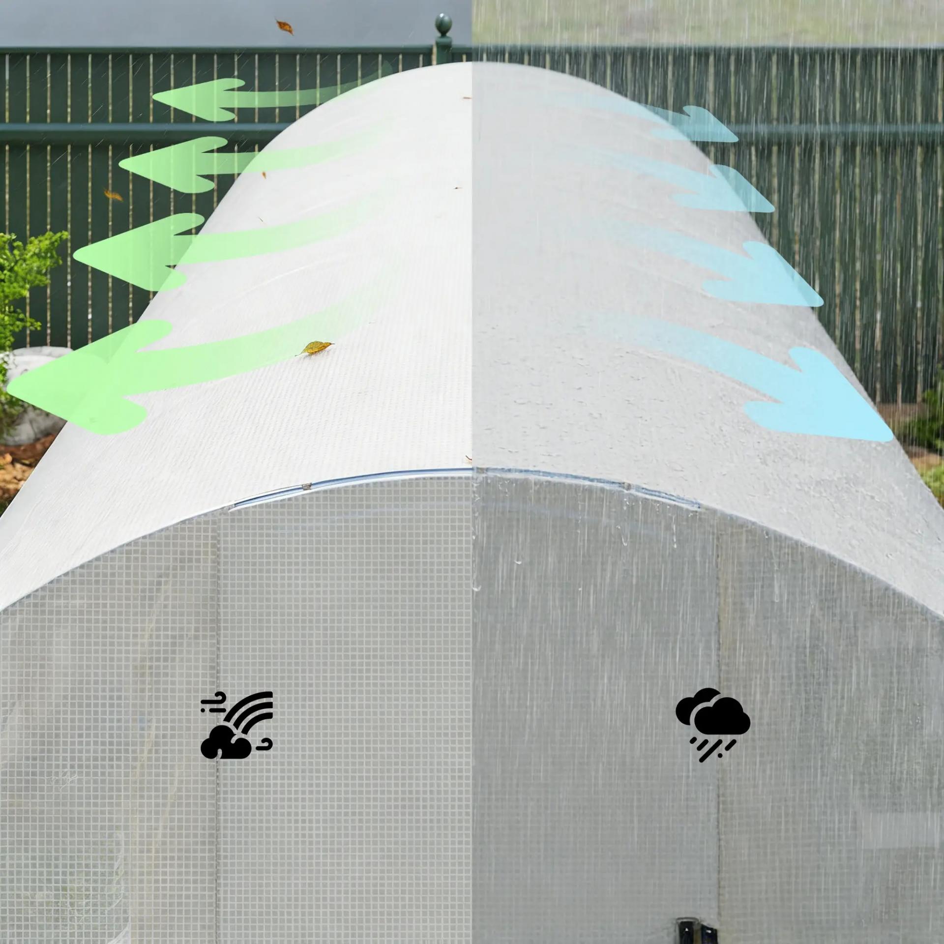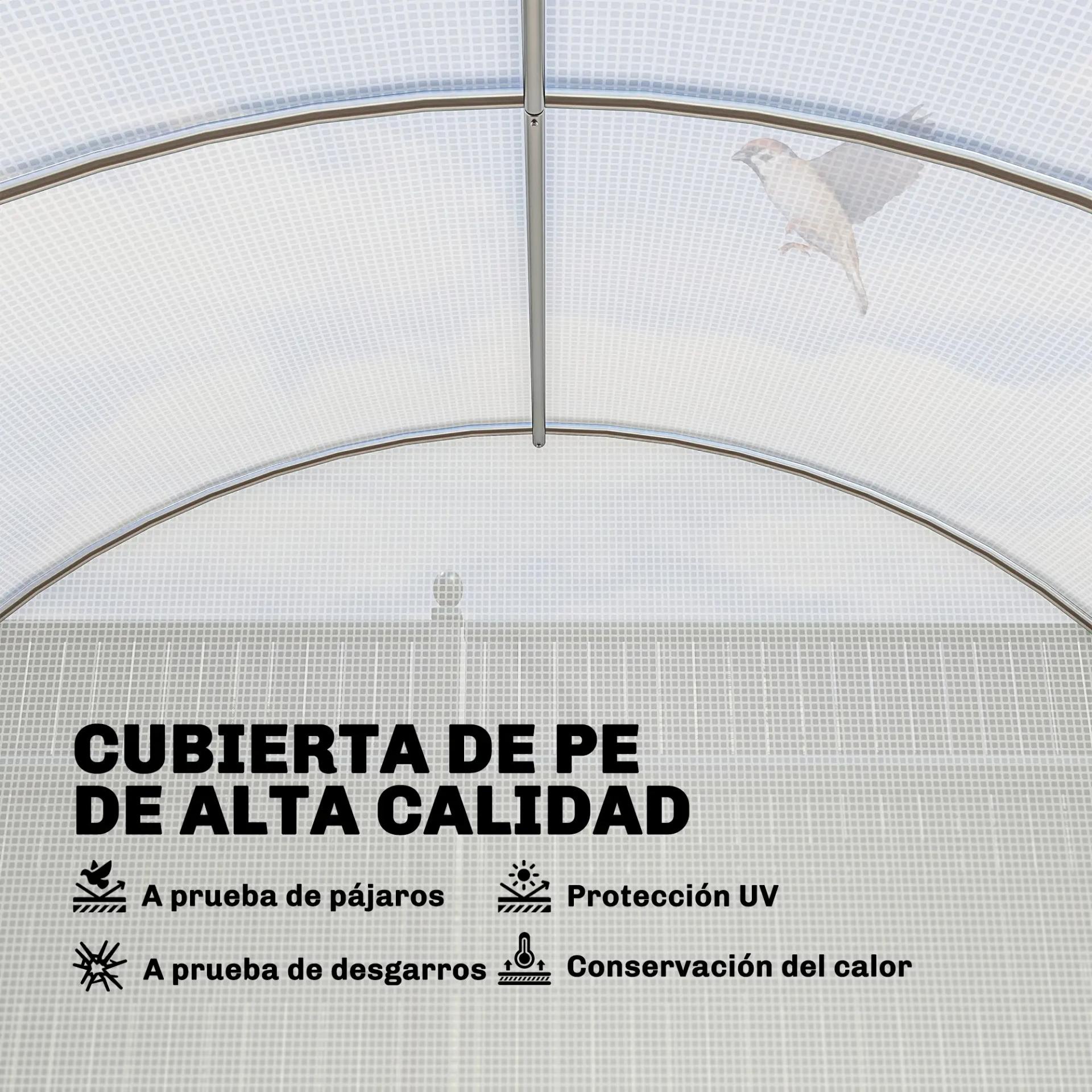 - ESTRUCTURA ROBUSTA: Este invernadero de túnel de Outsunny cuenta con un marco de acero galvanizado y cuatro postes diagonales que aportan resistencia al óxido y gran estabilidad, ideal para cultivar frutas y verduras en exteriores durante todo el año