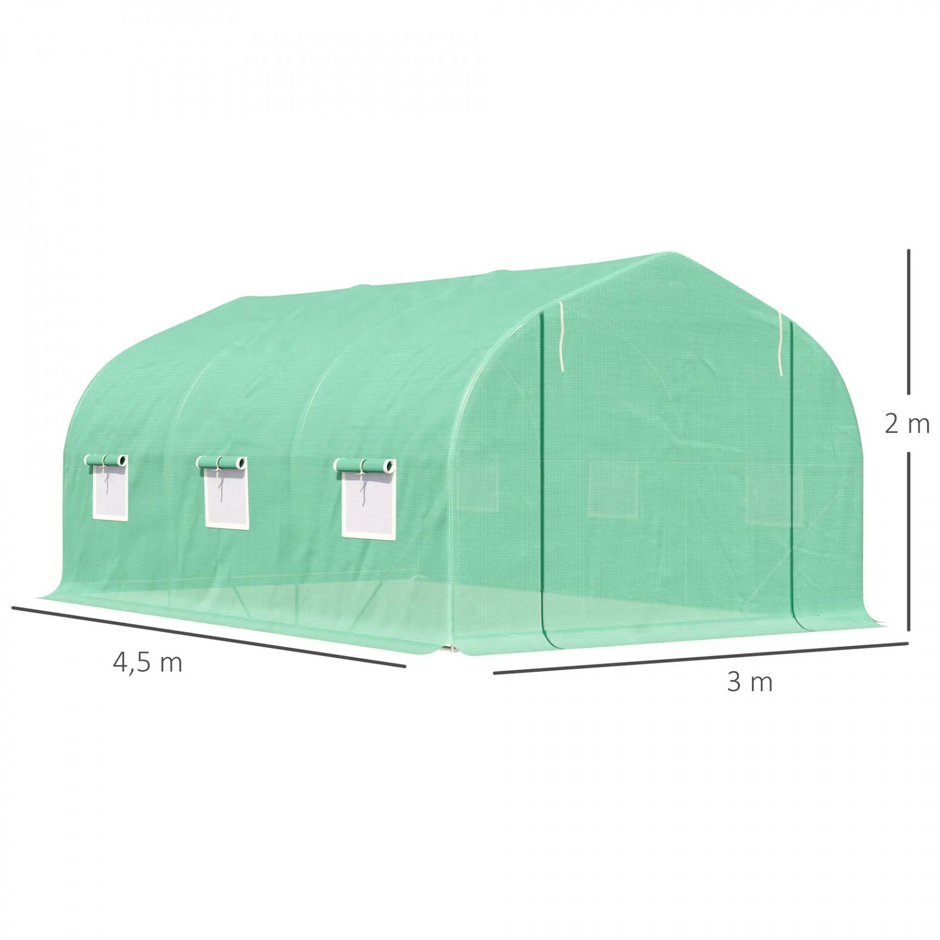 Invernadero de Túnel 450x300x205 cm Invernadero de Jardín con 6 Ventanas Cubierta de Polietileno PE 140 g/m² y Estructura de Acero para Cultivo Plantas Jardín Terraza Verde