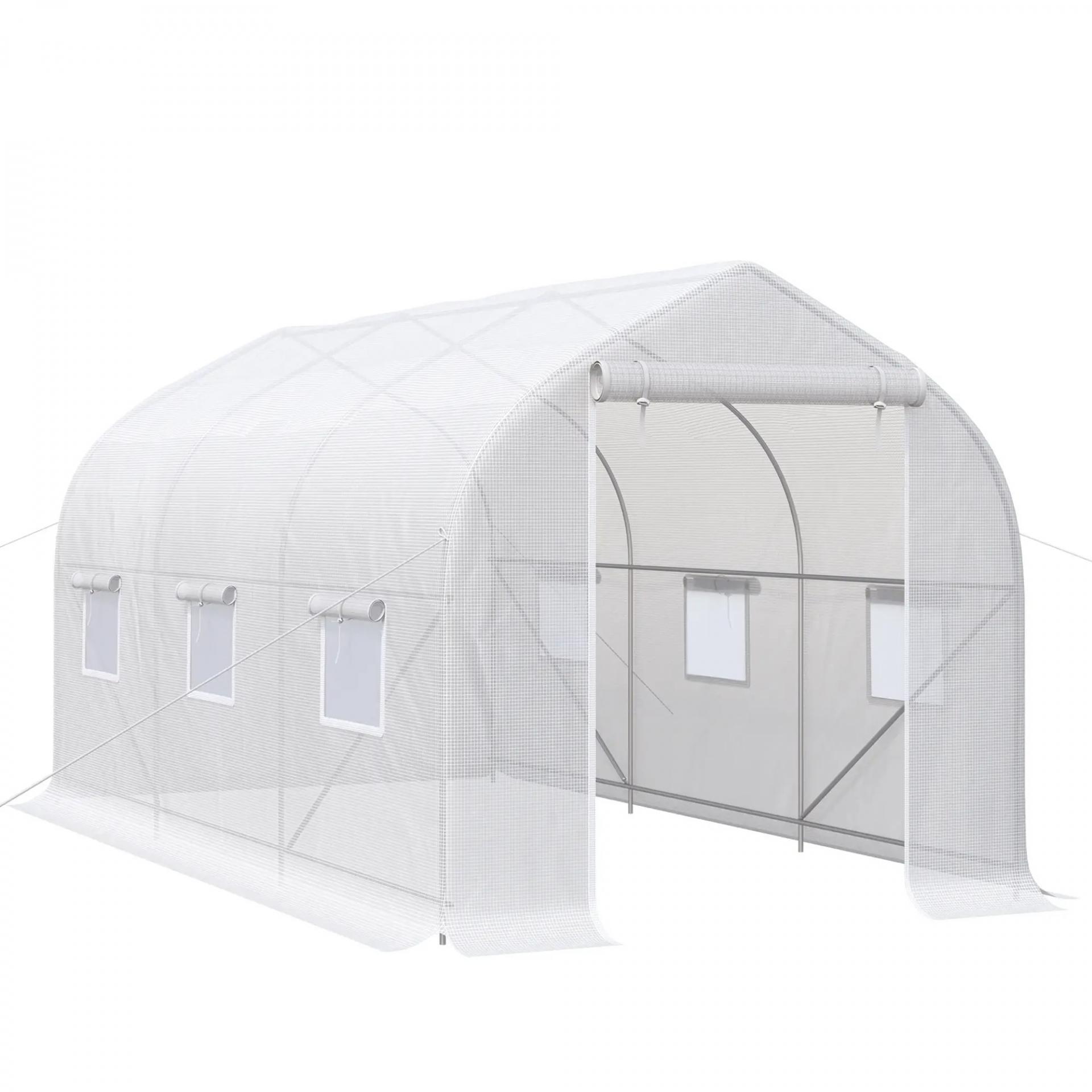 Invernadero de Jardín 4x2x2 m Tipo Túnel con 6 Ventanas Transpirables y Puerta Enrollable con Cremallera Huerto para Cultivo Plantas Verduras Blanco